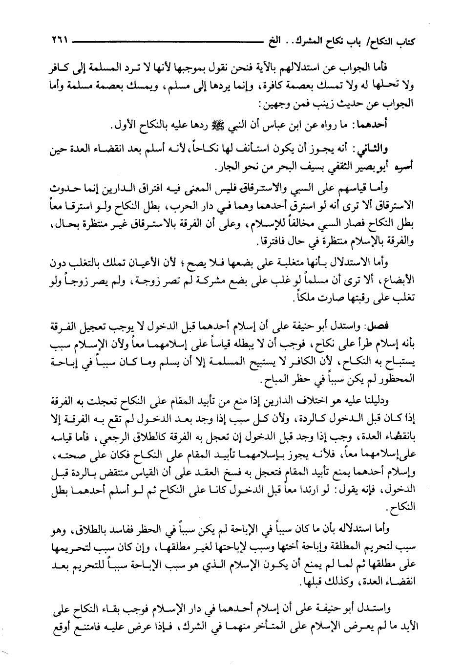 فَأَمَّا الْجَوَابُ عَنِ اسْتِدْلَالِهِمْ بِالْآيَةِ فَنَحْنُ نَقُولُ بموجبها لأنها لا ترد المسلمة إلى كافر ولا تحلها له ولا تمسك بعصمة كافرة، وإنما يردها إلى مسلم، ويسمك بِعِصْمَةِ مُسْلِمَةٍ وَأَمَّا الْجَوَابُ عَنْ حَدِيثِ زَيْنَبَ فمن وجهين: