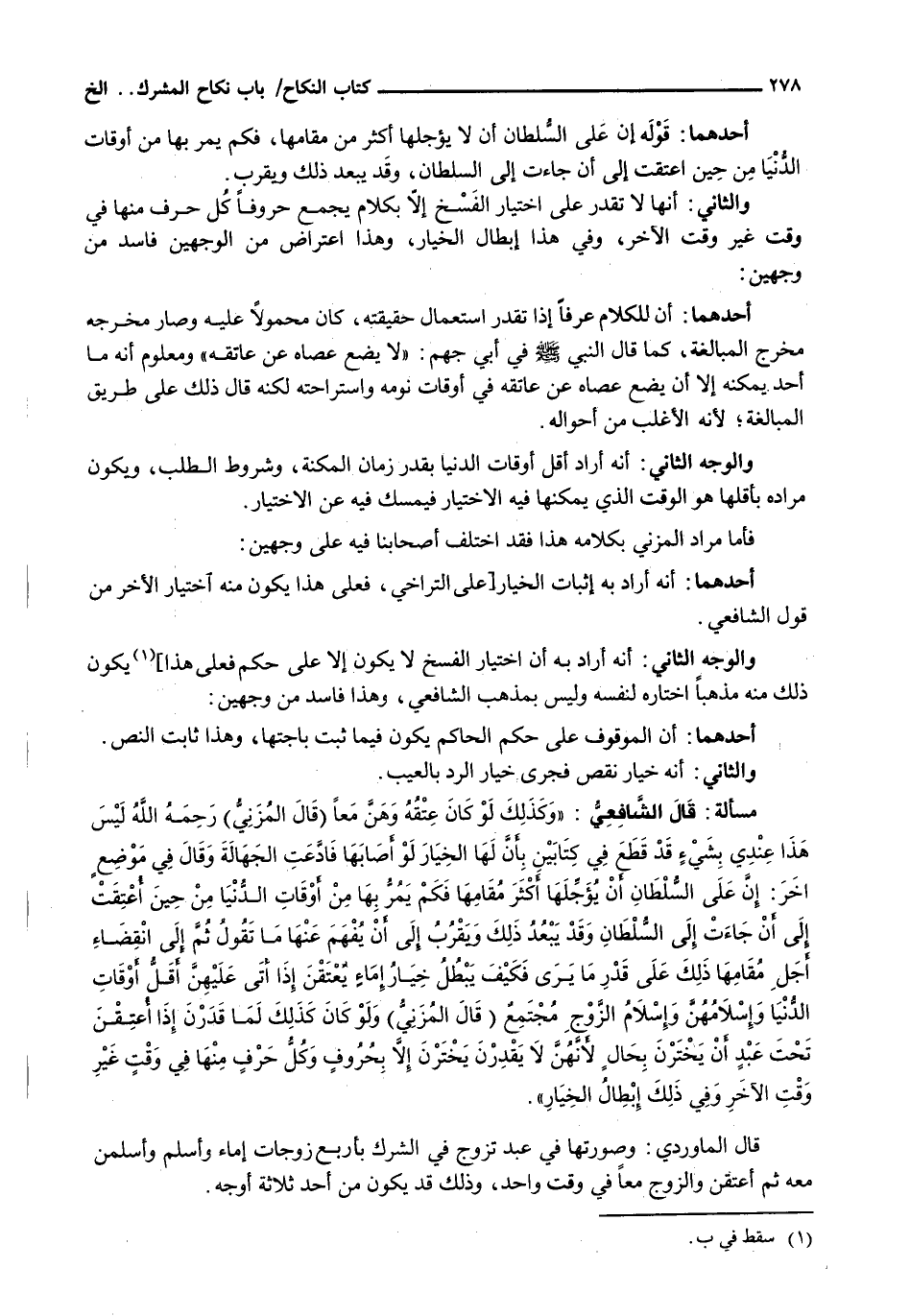 فَأَمَّا مُرَادُ الْمُزَنِيِّ بِكَلَامِهِ هَذَا فَقَدِ اخْتَلَفَ أَصْحَابُنَا فِيهِ عَلَى وَجْهَيْنِ: