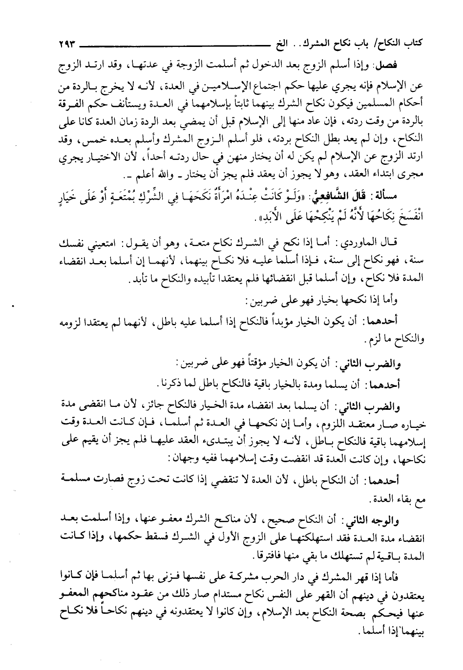وَالضَّرْبُ الثَّانِي: أَنْ يُسْلِمَا بَعْدَ انْقِضَاءِ مُدَّةِ الْخِيَارِ فَالنِّكَاحُ جَائِزٌ، لِأَنَّ مَا انْقَضَى مُدَّةَ خِيَارِهِ صَارَ معتقد اللُّزُومِ، وَأَمَّا إِنْ نَكَحَهَا فِي الْعِدَّةِ ثُمَّ أَسْلَمَا، فَإِنْ كَانَتِ الْعِدَّةُ وَقْتَ إِسْلَامِهِمَا بَاقِيَةً فَالنِّكَاحُ بَاطِلٌ، لِأَنَّهُ لَا يَجُوزُ أَنْ يَبْتَدِئَ الْعَقْدَ عَلَيْهَا فَلَمْ يَجُزْ أَنْ يُقِيمَ عَلَى نِكَاحِهَا، وَإِنْ كَانَتِ الْعِدَّةُ قَدِ انْقَضَتْ وَقْتَ إِسْلَامِهِمَا فَفِيهِ وَجْهَانِ: