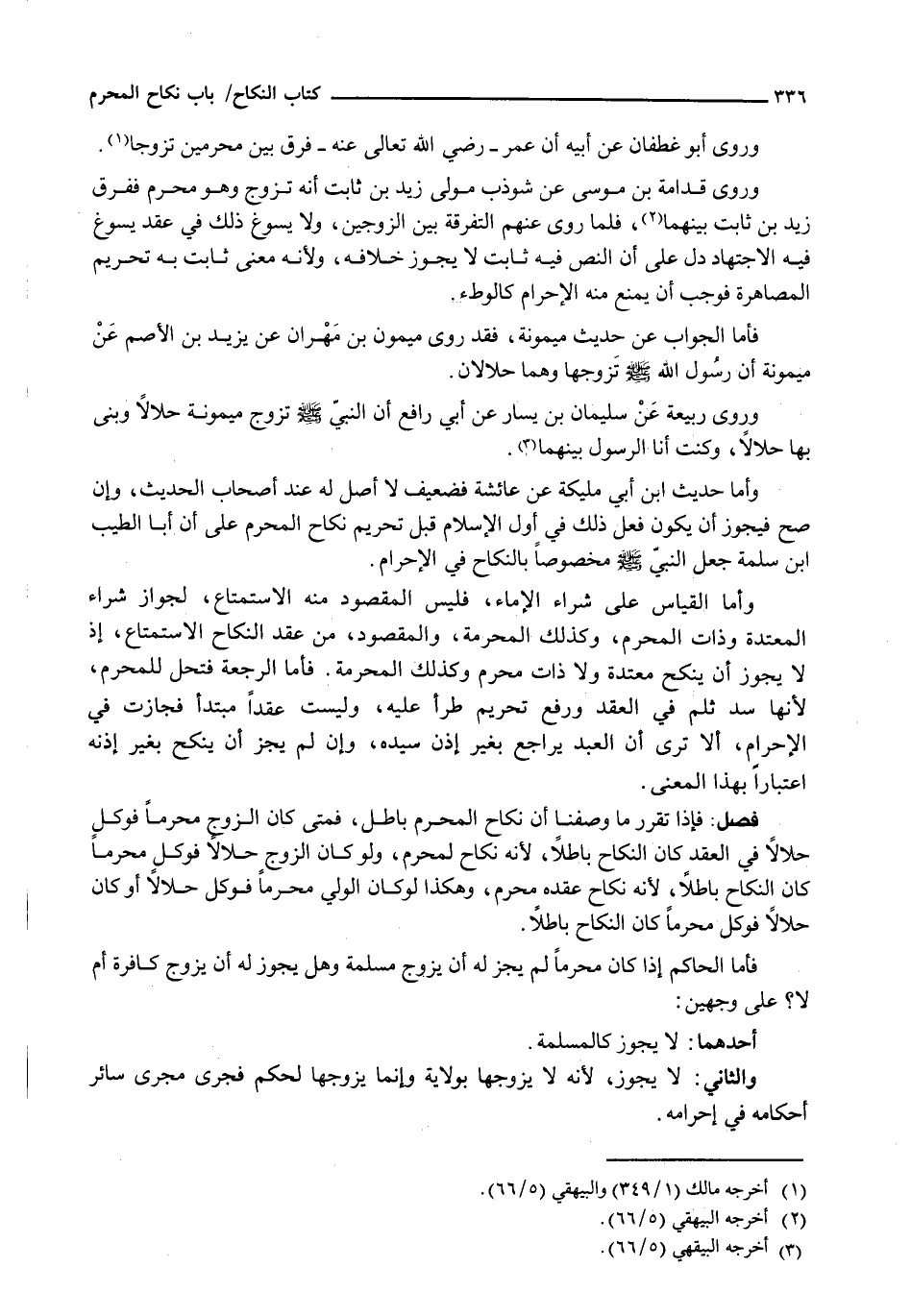وَرَوَى قُدَامَةُ بْنُ مُوسَى عَنْ شَوْذَبٍ مَوْلَى زَيْدِ بْنِ ثَابِتٍ أَنَّهُ تَزَوَّجَ وَهُوَ مُحْرِمٌ فَفَرَّقَ زَيْدُ بْنُ ثَابِتٍ بَيْنَهُمَا، فَلَمَّا رُوِيَ عَنْهُمُ التَّفْرِقَةُ بَيْنَ الزَّوْجَيْنِ، وَلَا يَسُوغُ ذَلِكَ فِي عَقْدٍ يَسُوغُ فِيهِ الِاجْتِهَادُ دَلَّ عَلَى أَنَّ النَّصَّ فِيهِ ثَابِتٌ لَا يَجُوزُ خِلَافُهُ، وَلِأَنَّهُ مَعْنًى ثابت بِهِ تَحْرِيمُ الْمُصَاهَرَةِ فَوَجَبَ أَنْ يُمْنَعَ مِنْهُ الْإِحْرَامُ كَالْوَطْءِ.