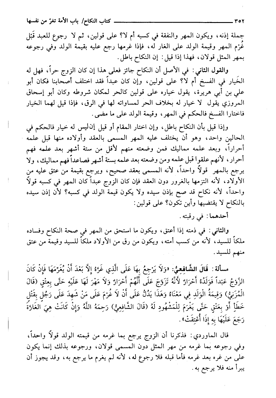قال الماوردي: فذكرنا أن الزوج يرجع بما غرمه من قيمته الْوَلَدِ قَوْلًا وَاحِدًا، وَفِي رُجُوعِهِ بِمَا غَرِمَهُ مِنْ مَهْرِ الْمِثْلِ دُونَ الْمُسَمَّى قَوْلَانِ، وَرُجُوعُهُ بِذَلِكَ إِنَّمَا يَكُونُ عَلَى مَنْ غَرَّهُ بَعْدَ غُرْمِهِ فَأَمَّا قَبْلَهُ فَلَا رُجُوعَ لَهُ، لِأَنَّهُ لَمْ يَغْرَمْ مَا يَرْجِعُ بِهِ، وَقَدْ يَجُوزُ أَنْ يَبْرَأَ مِنْهُ فَلَا يَرْجِعُ بِهِ.