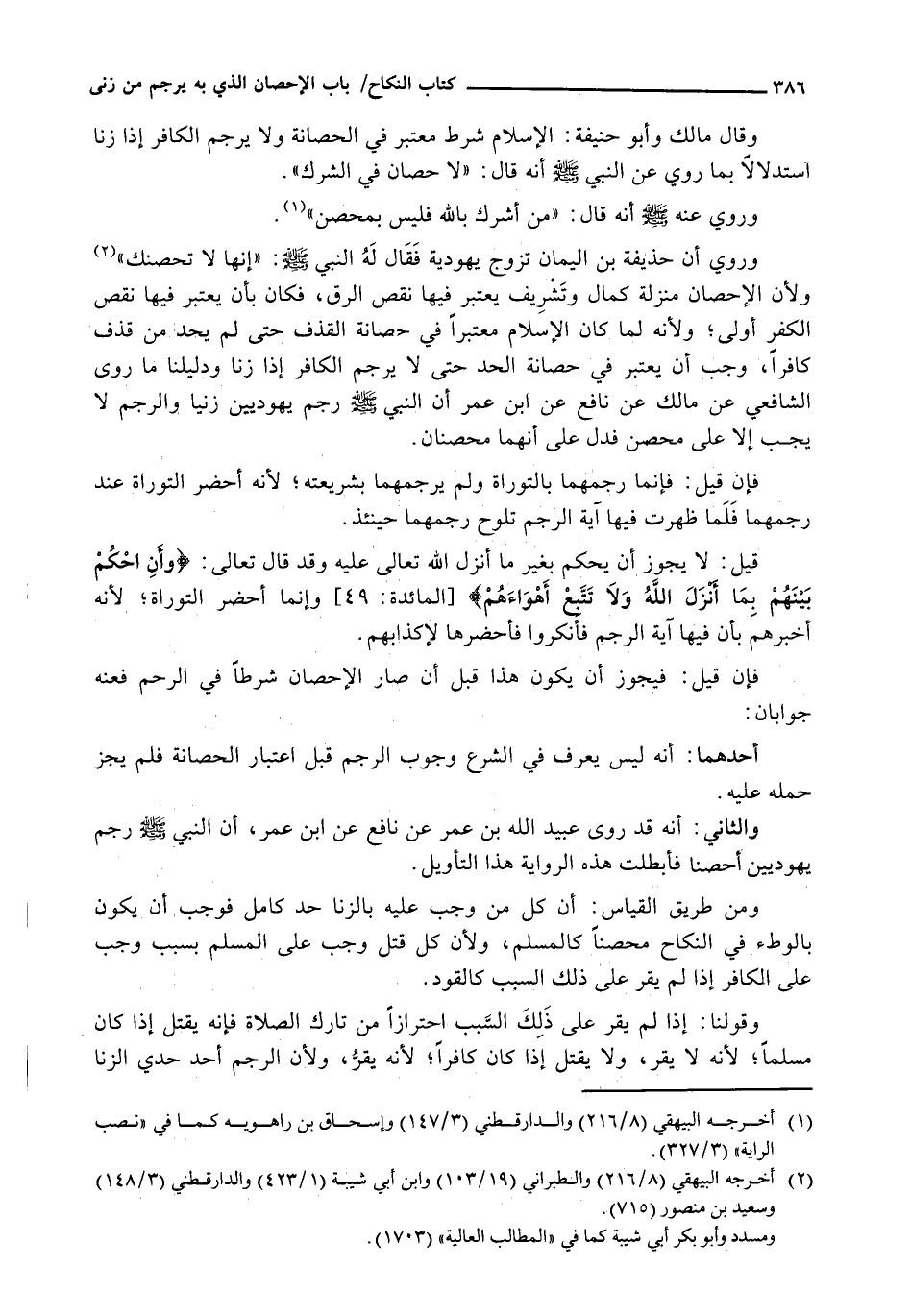 أَحَدُهُمَا: أَنَّهُ لَيْسَ يُعْرَفُ فِي الشَّرْعِ وُجُوبُ الرَّجْمِ قَبْلَ اعْتِبَارِ الْحَصَانَةِ فَلَمْ يَجُزْ حَمْلُهُ عَلَيْهِ.
