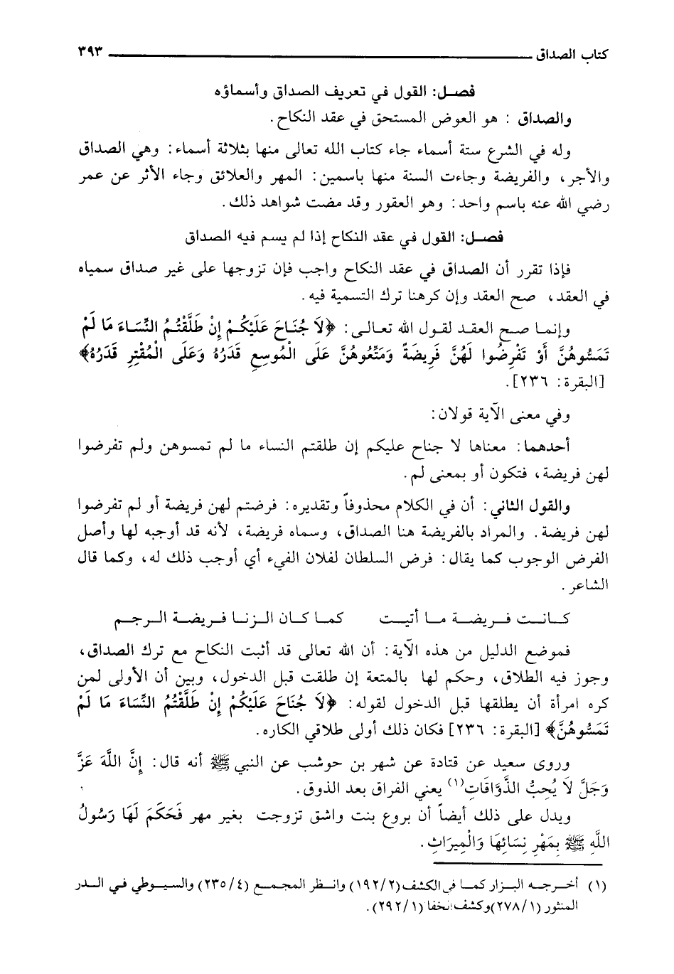 وَلَهُ فِي الشَّرْعِ سِتَّةُ أَسْمَاءٍ جَاءَ كِتَابُ اللَّهِ تَعَالَى مِنْهَا بِثَلَاثَةِ أَسْمَاءٍ: وَهِيَ الصَّدَاقُ وَالْأَجْرُ، وَالْفَرِيضَةُ وَجَاءَتِ السُّنَّةُ مِنْهَا بِاسْمَيْنِ: الْمَهْرُ وَالْعَلَائِقُ وَجَاءَ الْأَثَرُ عَنْ عُمَرَ رَضِيَ اللَّهُ عَنْهُ بِاسْمٍ وَاحِدٍ: وَهُوَ الْعَقُورُ وَقَدْ مَضَتْ شَوَاهِدُ ذَلِكَ.