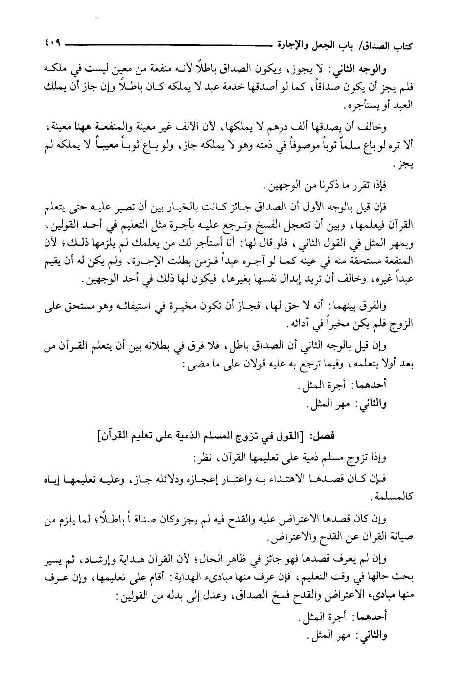 وَإِنْ قِيلَ بِالْوَجْهِ الثَّانِي إِنَّ الصَّدَاقَ بَاطِلٌ، فَلَا فَرْقَ فِي بُطْلَانِهِ بَيْنَ أَنْ يتعلم القرآن من بعد أولا يَتَعَلَّمَهُ، وَفِيمَا تَرْجِعُ بِهِ عَلَيْهِ قَوْلَانِ عَلَى مَا مَضَى: