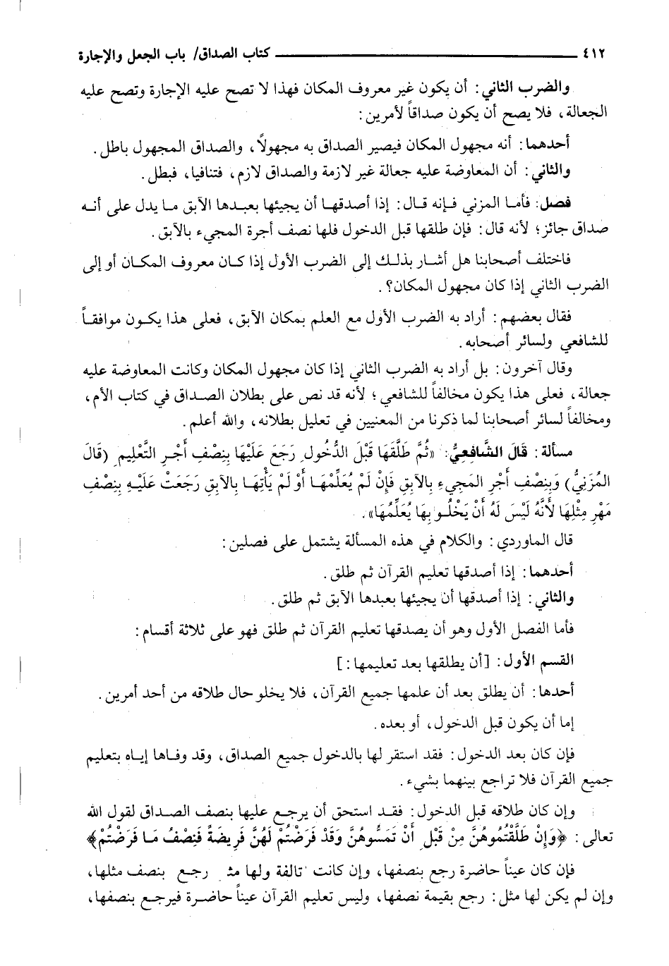 وَقَالَ آخَرُونَ: بَلْ أَرَادَ بِهِ الضَّرْبَ الثَّانِيَ إِذَا كَانَ مَجْهُولَ الْمَكَانِ وَكَانَتِ الْمُعَاوَضَةُ عَلَيْهِ جُعَالَةً، فَعَلَى هَذَا يَكُونُ مُخَالِفًا لِلشَّافِعِيِّ؛ لِأَنَّهُ قَدْ نَصَّ عَلَى بُطْلَانِ الصَّدَاقِ فِي كِتَابِ الْأُمِّ، وَمُخَالِفًا لِسَائِرِ أَصْحَابِنَا لِمَا ذَكَرْنَا مِنَ الْمَعْنَيَيْنِ فِي تَعْلِيلِ بُطْلَانِهِ، والله أعلم.
