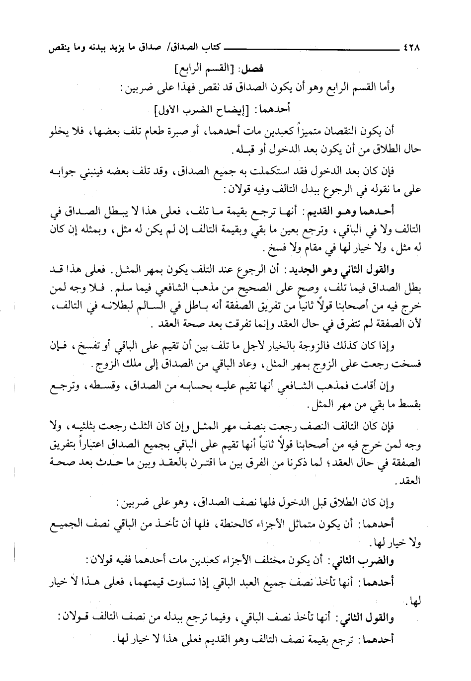 وَأَمَّا الْقِسْمُ الرَّابِعُ وَهُوَ أَنْ يَكُونَ الصَّدَاقُ قَدْ نَقَصَ فَهَذَا عَلَى ضَرْبَيْنِ: