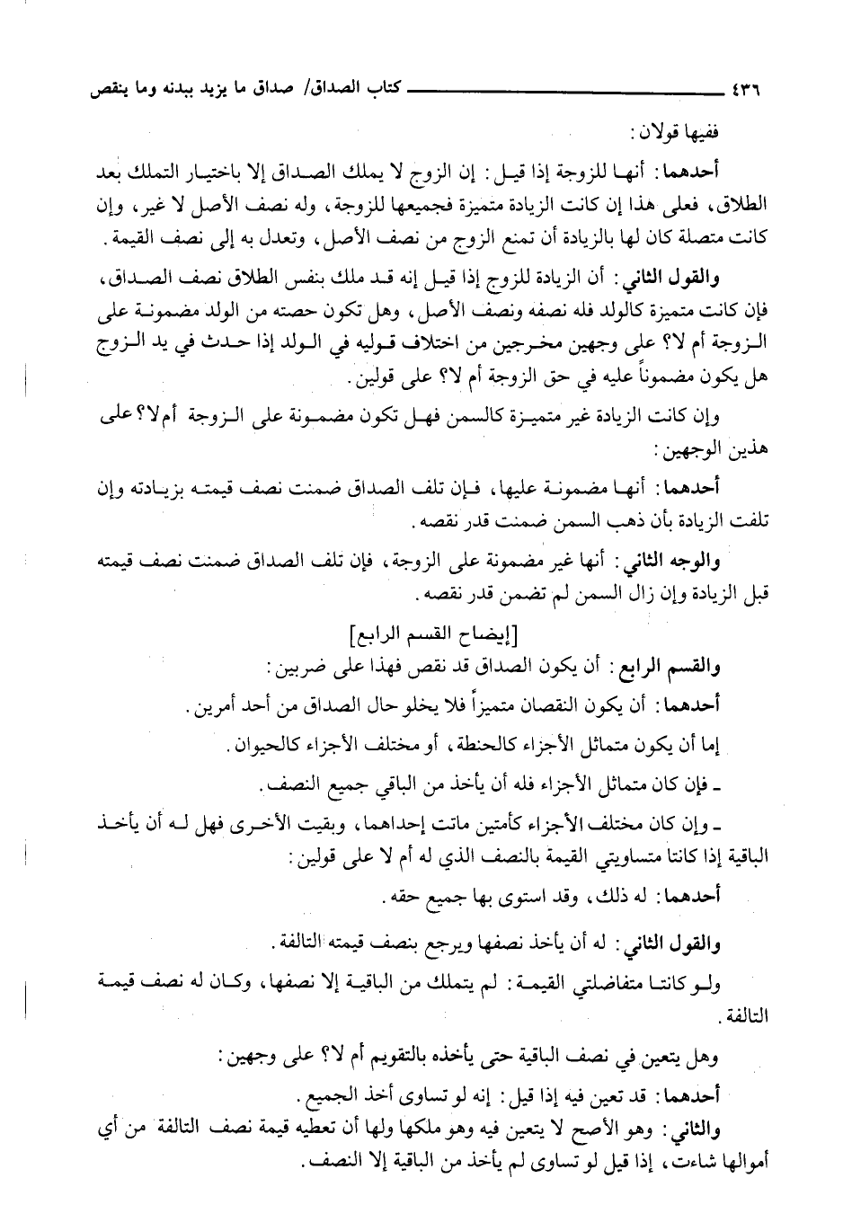 وَالْقِسْمُ الرَّابِعُ: أَنْ يَكُونَ الصَّدَاقُ قَدْ نَقَصَ فَهَذَا عَلَى ضَرْبَيْنِ: