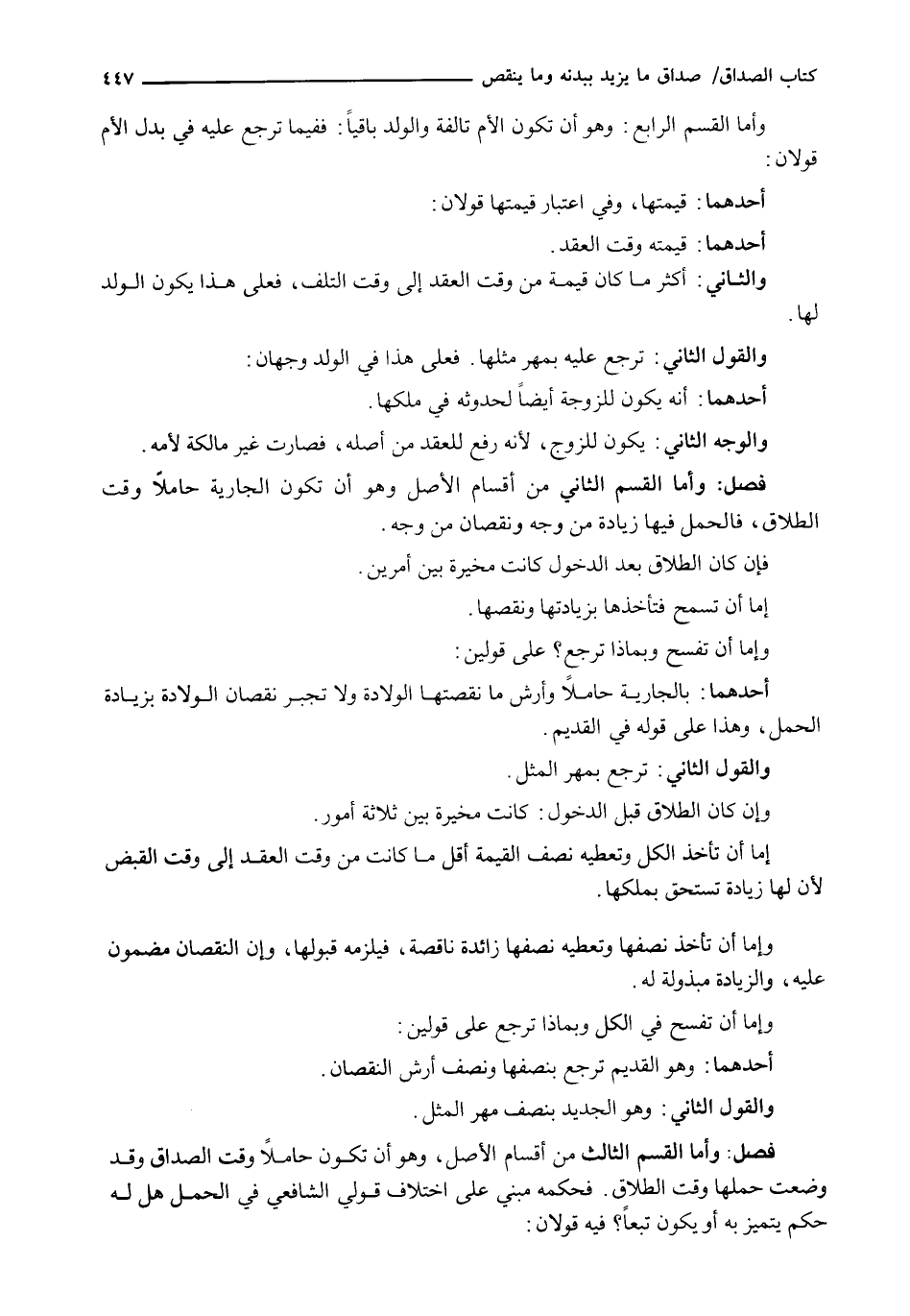 وَأَمَّا الْقِسْمُ الثَّانِي مِنْ أَقْسَامِ الْأَصْلِ وَهُوَ أن تكون الجارية حاملاً وقت الطلاق، فَالْحَمْلُ فِيهَا زِيَادَةٌ مِنْ وَجْهٍ وَنُقْصَانٌ مِنْ وَجْهٍ.