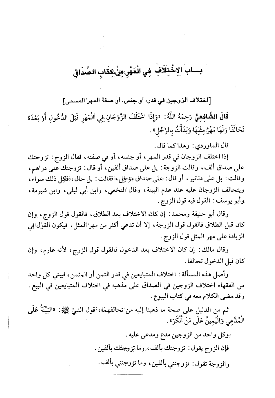وَأَصْلُ هَذِهِ الْمَسْأَلَةِ: اخْتِلَافُ الْمُتَبَايِعَيْنِ فِي قَدْرِ الثَّمَنِ أَوِ الْمُثَمَّنِ، فَيَبْنِي كُلُّ وَاحِدٍ مِنَ الْفُقَهَاءِ اخْتِلَافَ الزَّوْجَيْنِ فِي الصَّدَاقِ عَلَى مَذْهَبِهِ فِي اخْتِلَافِ الْمُتَبَايِعَيْنِ فِي الْبَيْعِ. وَقَدْ مَضَى الْكَلَامُ مَعَهُ فِي كِتَابِ الْبُيُوعِ.