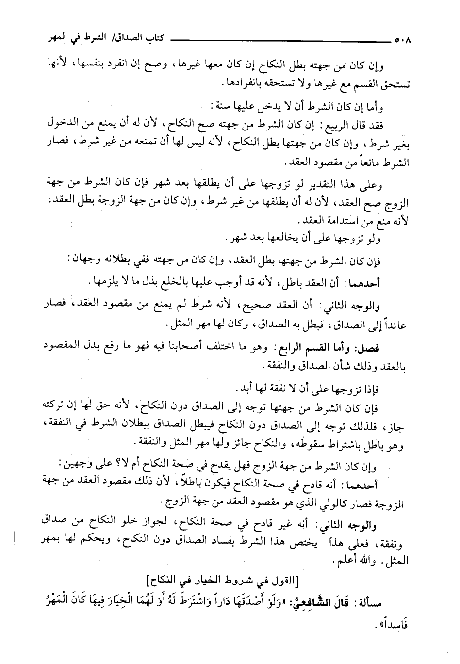 الْقَوْلُ فِي شُرُوطِ الْخِيَارِ فِي النِّكَاحِ