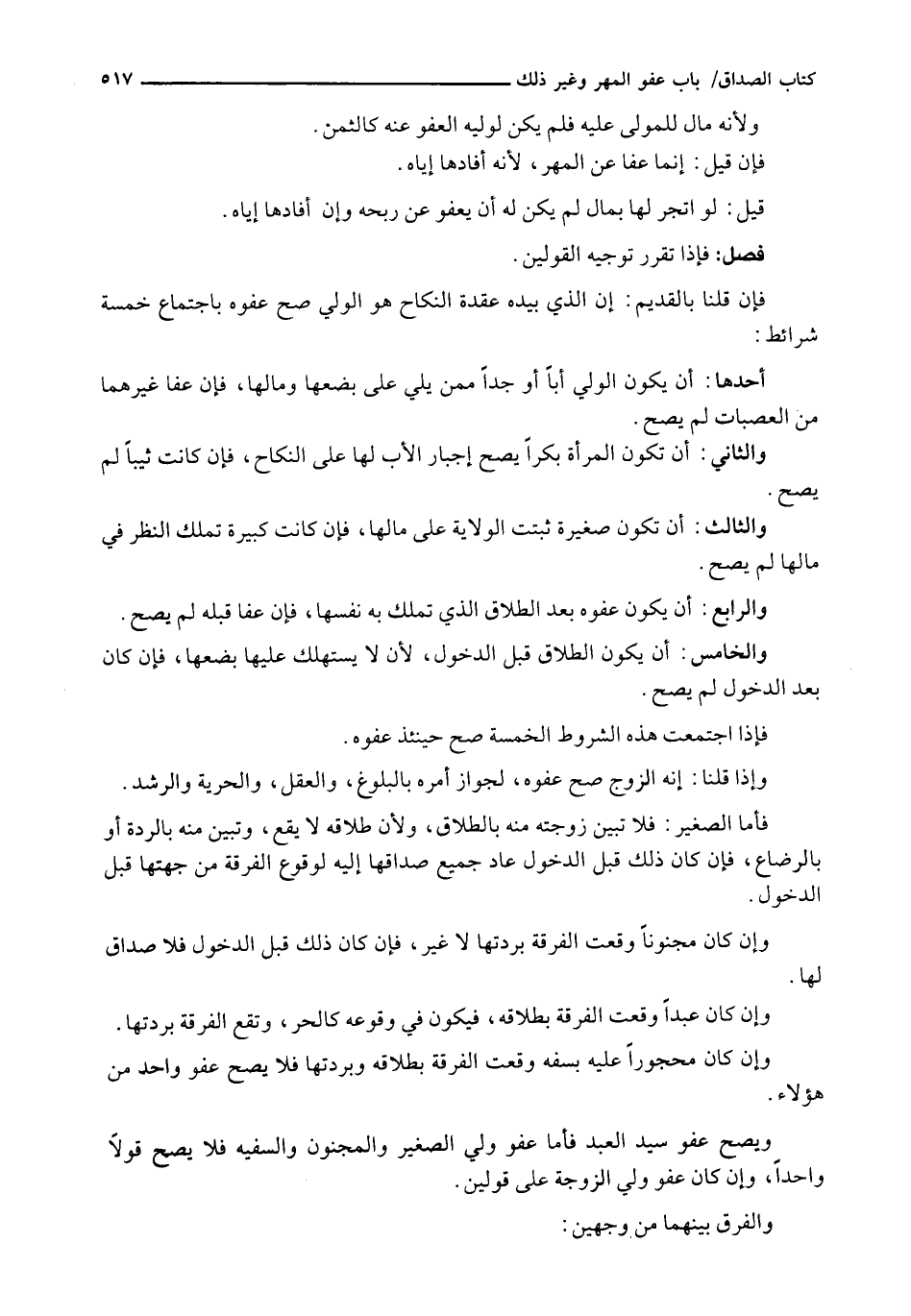 فَإِنْ قُلْنَا بِالْقَدِيمِ: إِنَّ الَّذِي بِيَدِهِ عُقْدَةُ النِّكَاحِ هُوَ الْوَلِيُّ صَحَّ عَفْوُهُ، بِاجْتِمَاعِ خَمْسَةِ شَرَائِطَ: