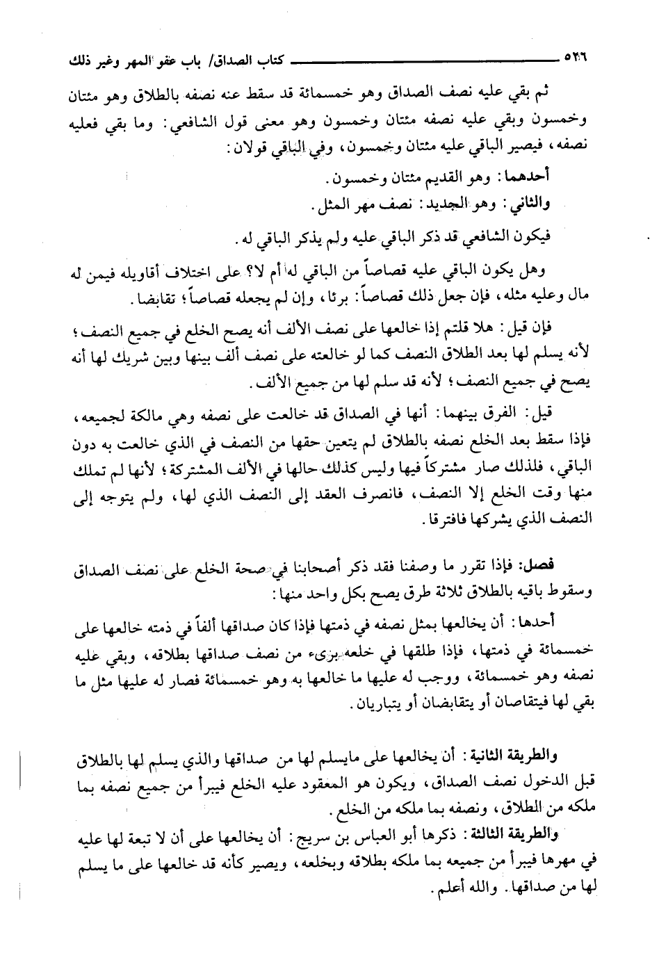 وَالطَّرِيقَةُ الثَّانِيَةُ: أَنْ يُخَالِعَهَا عَلَى مَا يُسَلِّمُ لَهَا مِنْ صَدَاقِهَا وَالَّذِي يُسَلَّمُ لَهَا بِالطَّلَاقِ قَبْلَ الدُّخُولِ نِصْفُ الصَّدَاقِ، وَيَكُونُ هُوَ الْمَعْقُودَ عَلَيْهِ الْخُلْعُ فَيَبْرَأُ مِنْ جَمِيعِ نِصْفِهِ بِمَا مَلَكَهُ مِنَ الطَّلَاقِ، وَنِصْفِهِ بِمَا مَلَكَهُ مِنَ الْخُلْعِ.