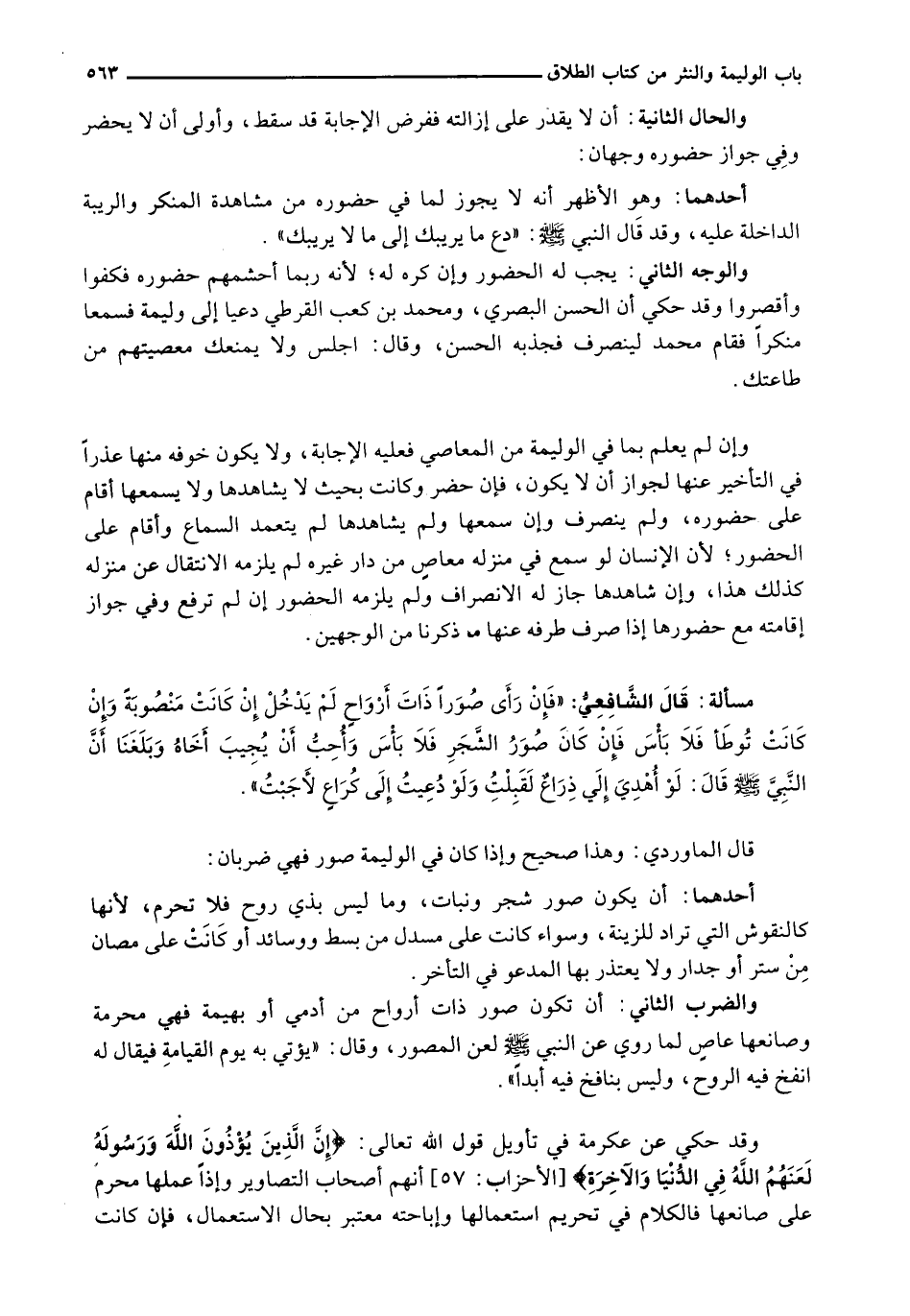 قَالَ الْمَاوَرْدِيُّ: وَهَذَا صَحِيحٌ وَإِذَا كَانَ فِي الْوَلِيمَةِ صُوَرٌ فَهِيَ ضَرْبَانِ: