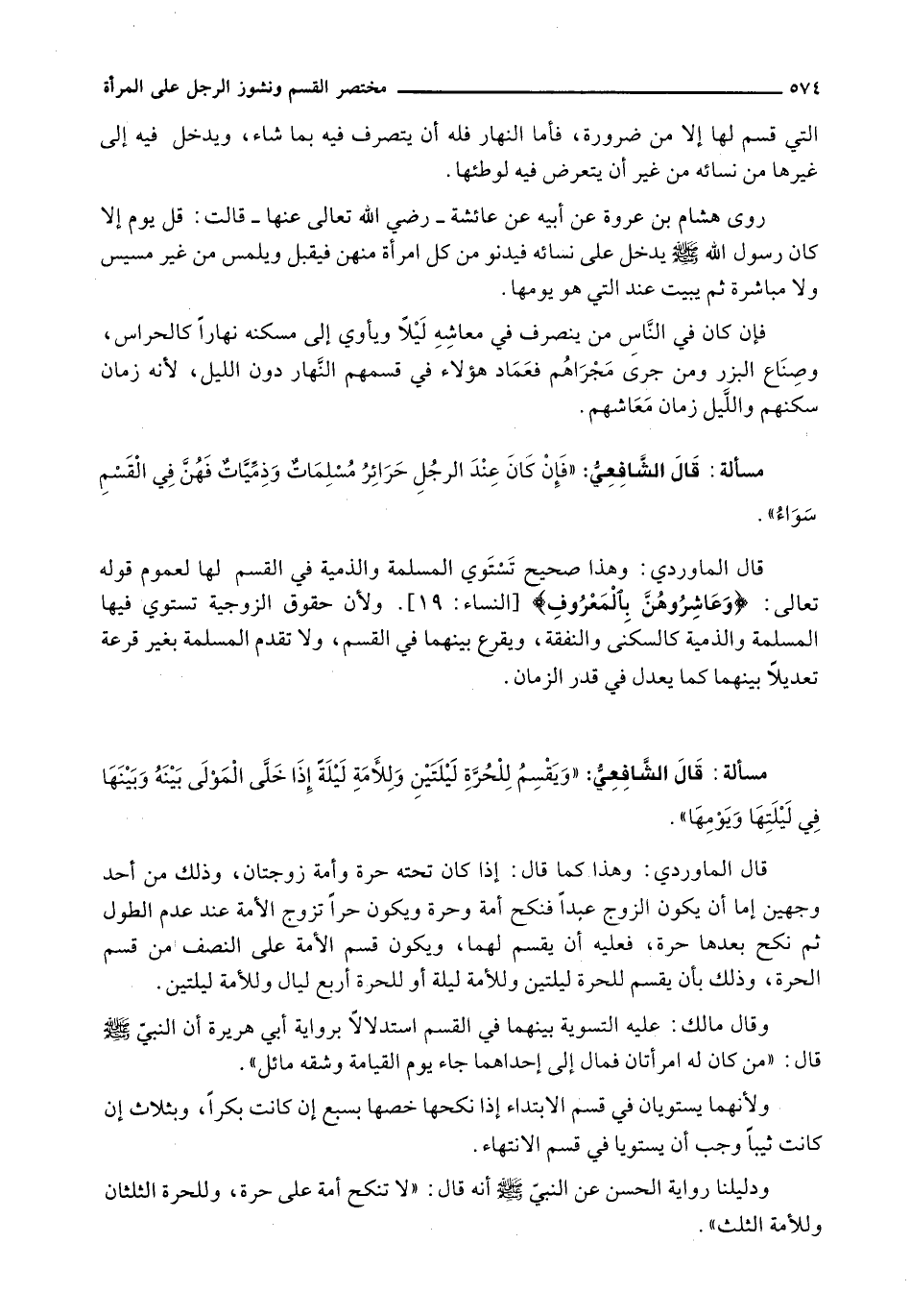 قال الشافعي: " فَإِنْ كَانَ عِنْدَ الرَّجُلِ حَرَائِرُ مسلماتٌ وذمياتٌ فَهُنَّ فِي الْقَسْمِ سَوَاءٌ ".