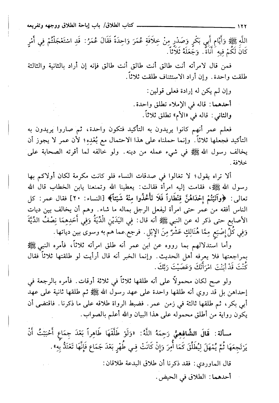 قَالَ الْمَاوَرْدِيُّ: فقد ذَكَرْنَا أَنَّ طَلَاقَ الْبِدْعَةِ طَلَاقَانِ: