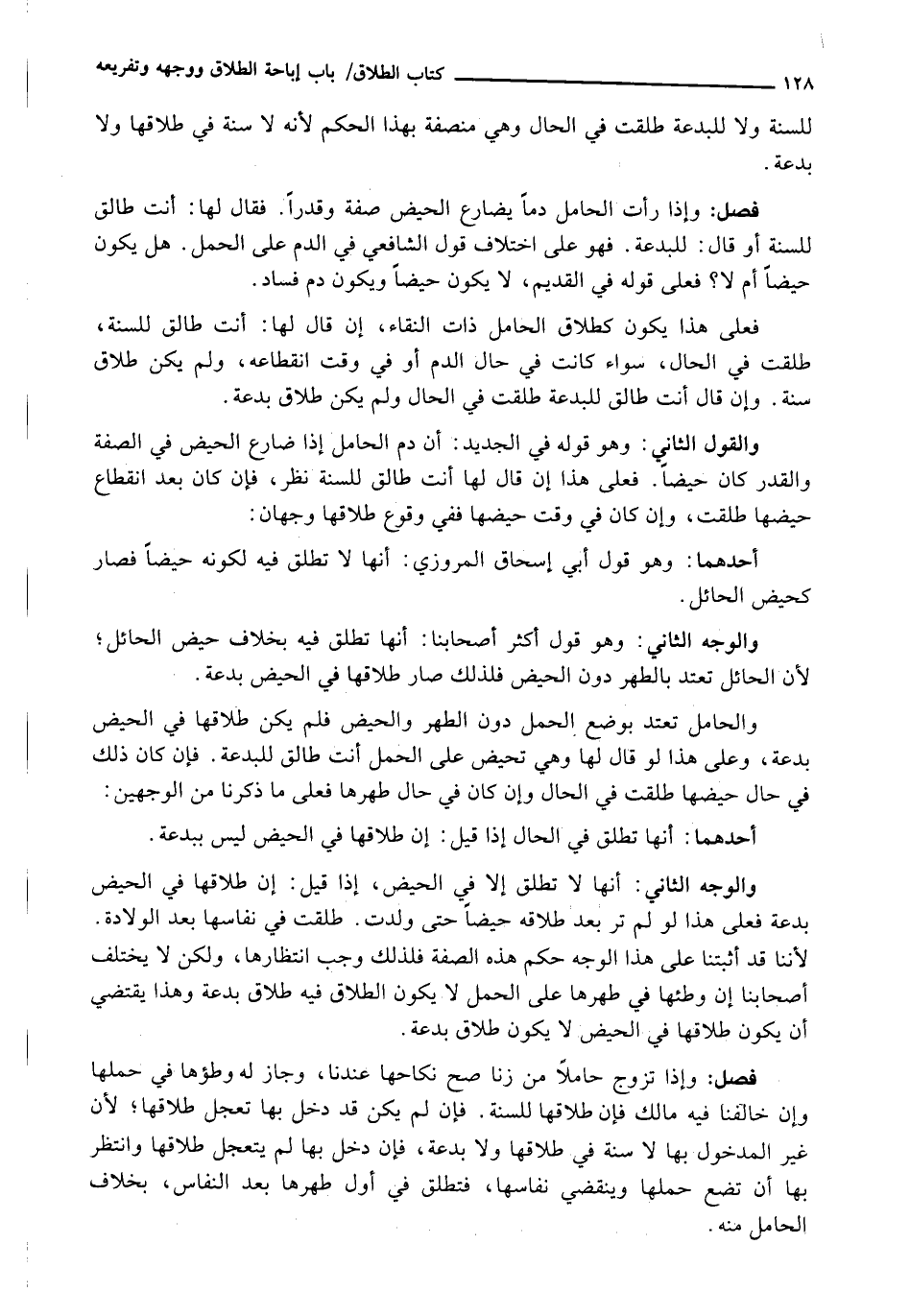 وَالْوَجْهُ الثَّانِي: أنَّهَا لَا تُطَلَّقُ إِلَّا فِي الْحَيْضِ، إِذَا قِيلَ: إِنَّ طَلَاقَهَا فِي الْحَيْضِ بِدْعَةٌ فَعَلَى هَذَا لَوْ لَمْ تَرَ بَعْدَ طَلَاقِهِ حَيْضًا حَتَّى وَلَدَتْ. طُلِّقَتْ فِي نِفَاسِهَا بَعْدَ الْوِلَادَةِ. لِأَنَّنَا قَدْ أَثْبَتْنَا عَلَى هَذَا الْوَجْهِ حُكْمَ هَذِهِ الصِّفَةِ فَلِذَلِكَ وَجَبَ انْتِظَارُهَا، وَلَكِنْ لَا يَخْتَلِفُ أَصْحَابُنَا إِنْ وَطِئَهَا فِي طُهْرِهَا عَلَى الْحَمْلِ لَا يَكُونُ الطَّلَاقُ فِيهِ طَلَاقَ بِدْعَةٍ وَهَذَا يَقْتَضِي أَنْ يَكُونَ طَلَاقُهَا فِي الْحَيْضِ لَا يَكُونُ طَلَاقَ بِدْعَةٍ.