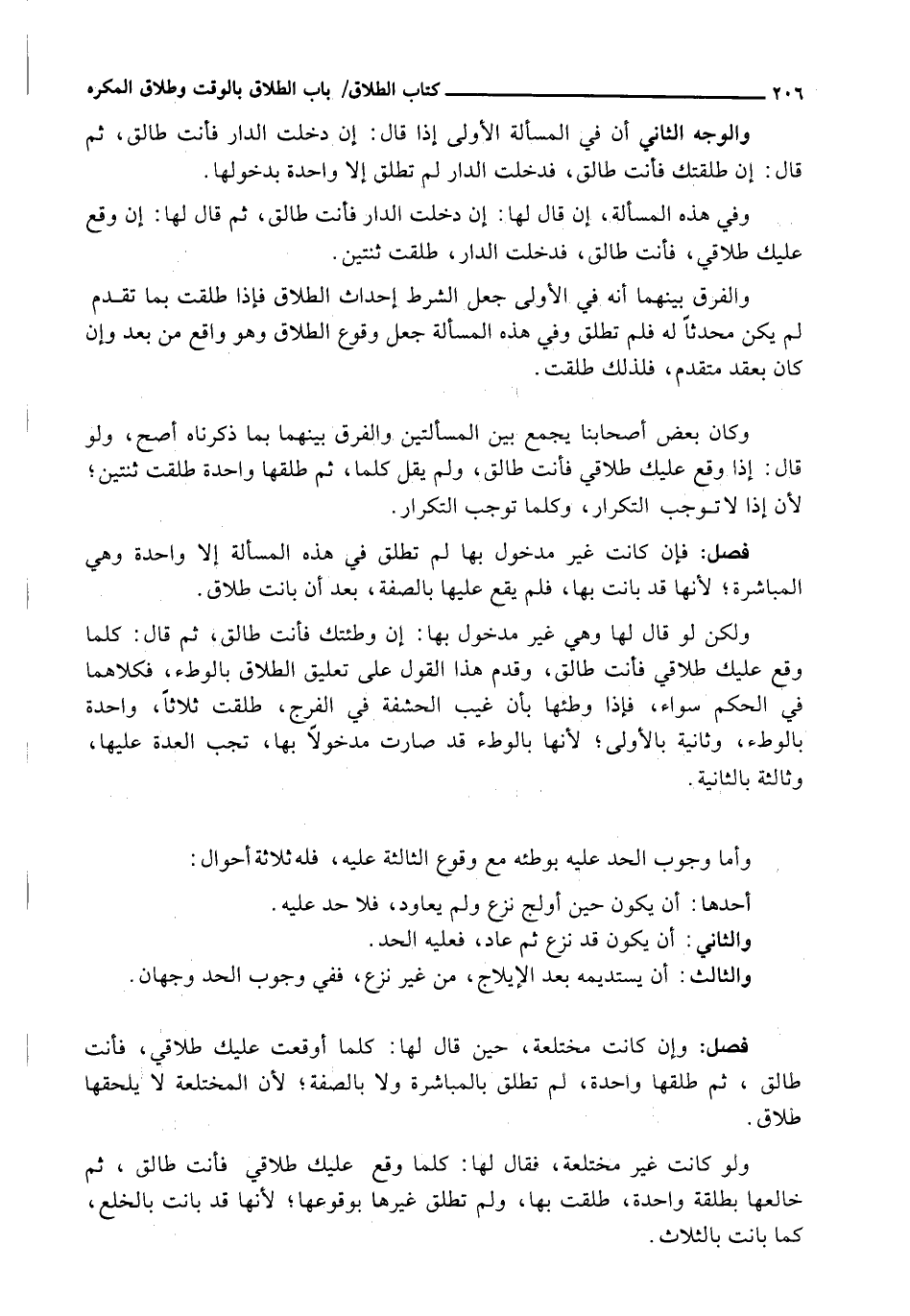 وَلَكِنْ لَوْ قَالَ لَهَا وَهِيَ غَيْرُ مَدْخُولٍ بِهَا: إِنْ وَطِئْتُكِ فَأَنْتِ طَالِقٌ، ثُمَّ قَالَ: كُلَّمَا وَقَعَ عَلَيْكِ طَلَاقِي فَأَنْتِ طَالِقٌ، وَقَدَّمَ هَذَا الْقَوْلَ عَلَى تَعْلِيقِ الطَّلَاقِ بِالْوَطْءِ، فَكِلَاهُمَا فِي الْحُكْمِ سَوَاءٌ، فَإِذَا وَطِئَهَا بِأَنْ غَيَّبَ الْحَشَفَةَ فِي الْفَرْجِ، طُلِّقَتْ ثَلَاثًا، وَاحِدَةً بِالْوَطْءِ، وَثَانِيَةً بِالْأُولَى، لِأَنَّهَا بِالْوَطْءِ قَدْ صَارَتْ مَدْخُولًا بِهَا، تَجِبُ الْعِدَّةُ عَلَيْهَا، وَثَالِثَةً بِالثَّانِيَةِ.