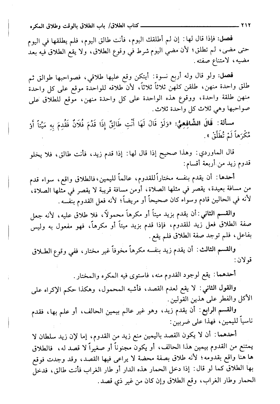قَالَ الْمَاوَرْدِيُّ: وَهَذَا صَحِيحٌ إِذَا قَالَ لَهَا: إِذَا قَدِمَ زَيْدٌ، فَأَنْتِ طَالِقٌ، فَلَا يَخْلُو قُدُومُ زَيْدٍ مِنْ أَرْبَعَةِ أَقْسَامٍ: