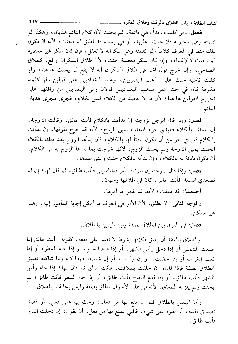 فِي الْفَرْقِ بَيْنَ الطَّلَاقِ بصفة وبين اليمين بالطلاق.