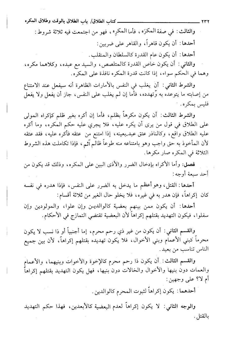 وأما الأكراه بِإِدْخَالِ الضَّرَرِ وَالْأَذَى الْبَيِّنِ عَلَى الْمُكْرَهِ، وَذَلِكَ قَدْ يَكُونُ مِنْ أَحَدِ سَبْعَةِ أَوْجُهٍ: