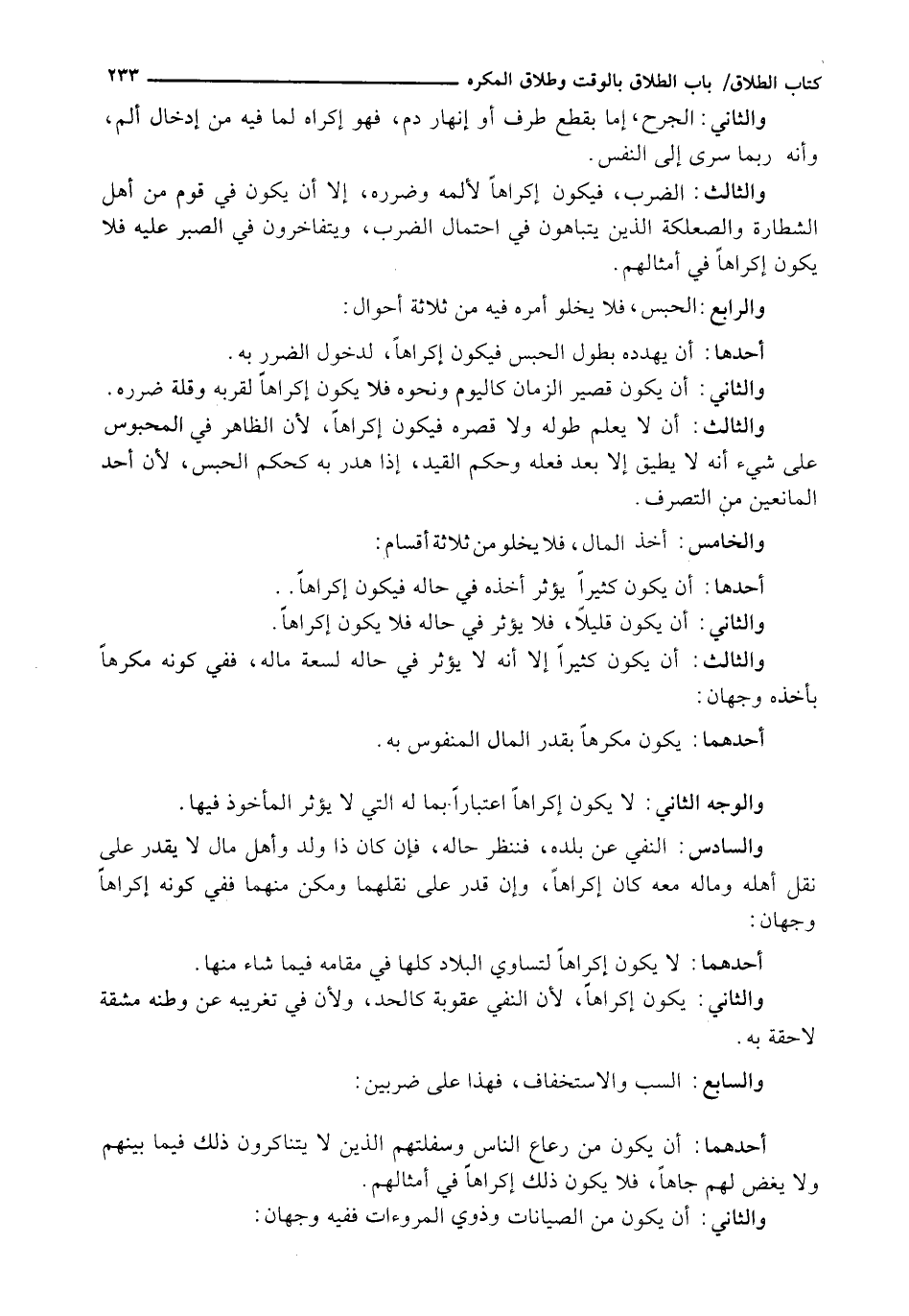 وَالثَّالِثُ: الضَّرْبُ، فَيَكُونُ إِكْرَاهًا لِأَلَمِهِ وَضَرَرِهِ، إِلَّا أَنْ يَكُونَ فِي قَوْمٍ مِنْ أَهْلِ الشَّطَارَةِ وَالصَّعْلَكَةِ الَّذِينَ يَتَبَاهَوْنَ فِي احْتِمَالِ الضَّرْبِ، وَيَتَفَاخَرُونَ فِي الصَّبْرِ عَلَيْهِ فَلَا يَكُونُ إِكْرَاهًا فِي أَمْثَالِهِمْ.
