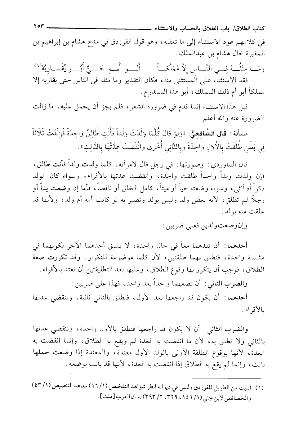 فِي كَلَامِهِمْ عَوْدُ الِاسْتِثْنَاءِ إِلَى مَا تَعَقَّبَهُ، وَهُوَ قَوْلُ الْفَرَزْدَقِ فِي مَدْحِ هِشَامِ بْنِ إِبْرَاهِيمَ بْنِ الْمُغِيرَةِ خَالِ هِشَامِ بْنِ عَبْدِ الْمَلِكِ.