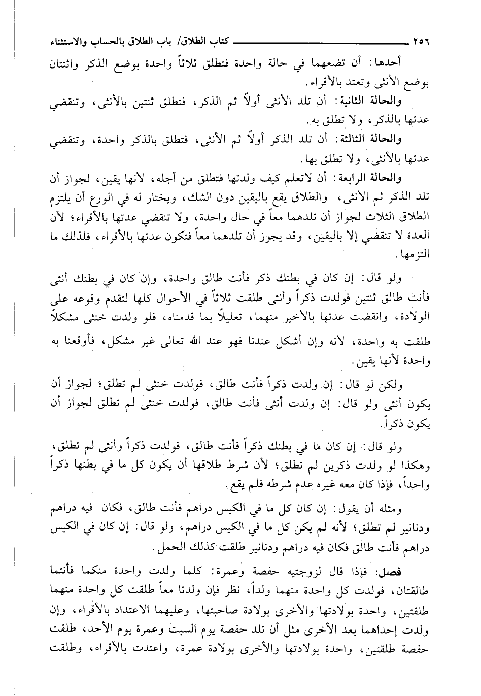 وَالْحَالَةُ الرَّابِعَةُ: أَنْ لَا تعلم كيف ولدتها فَتُطَلَّقُ مِنْ أَجْلِهِ، لِأَنَّهَا يَقِينٌ، لِجَوَازِ أَنْ تَلِدَ الذَّكَرَ ثُمَّ الْأُنْثَى، وَالطَّلَاقُ يَقَعُ بِالْيَقِينِ دُونَ الشَّكِّ، وَيُخْتَارُ لَهُ فِي الْوَرَعِ أَنْ يَلْتَزِمَ الطَّلَاقَ الثَّلَاثَ لِجَوَازِ أَنْ تَلِدَهُمَا مَعًا فِي حَالٍ وَاحِدَةٍ، وَلَا تَنْقَضِي عِدَّتُهَا بِالْأَقْرَاءِ؛ لِأَنَّ الْعِدَّةَ لَا تَنْقَضِي إِلَّا بِالْيَقِينِ، وَقَدْ يَجُوزُ أَنْ تَلِدَهُمَا مَعًا فَتَكُونَ عِدَّتُهَا بِالْأَقْرَاءِ، فَلِذَلِكَ مَا الْتَزَمَهَا.