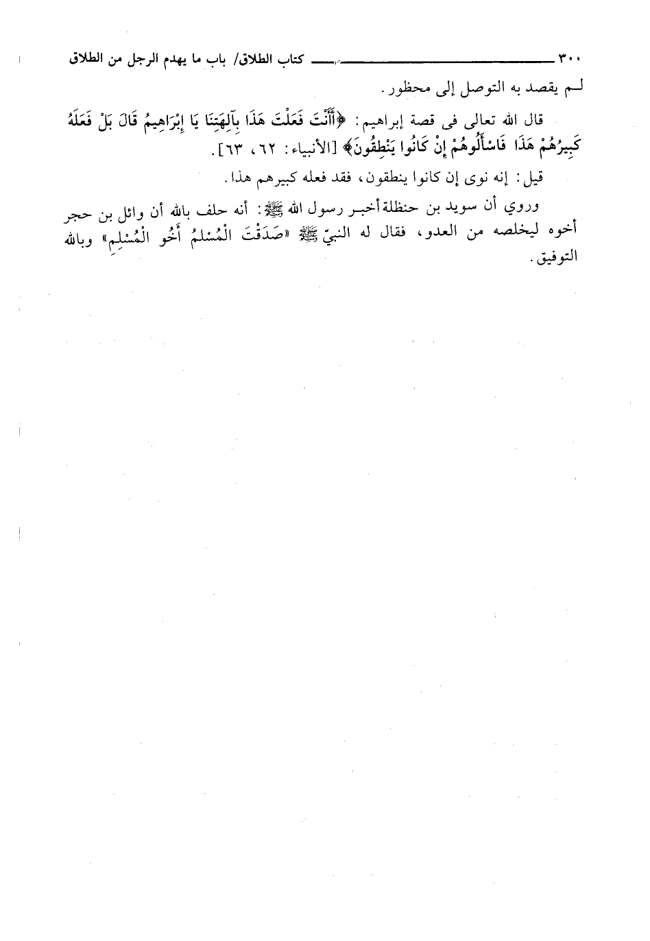 وَرُوِيَ أَنَّ سُوَيْدَ بْنَ حَنْظَلَةَ أَخْبَرَ رَسُولَ اللَّهِ - صَلَّى اللَّهُ عَلَيْهِ وَسَلَّم َ -: أَنَّهُ حَلَفَ بِاللَّهِ أَنَّ وَائِلَ بْنَ حُجْرٍ أَخُوهُ لِيُخَلِّصَهُ مِنَ الْعَدُّوِ، فَقَالَ لَهُ النَّبِيُّ - صَلَّى اللَّهُ عَلَيْهِ وَسَلَّم َ - (صدقت المسلم أخو المسلم) وبالله التوفيق.
