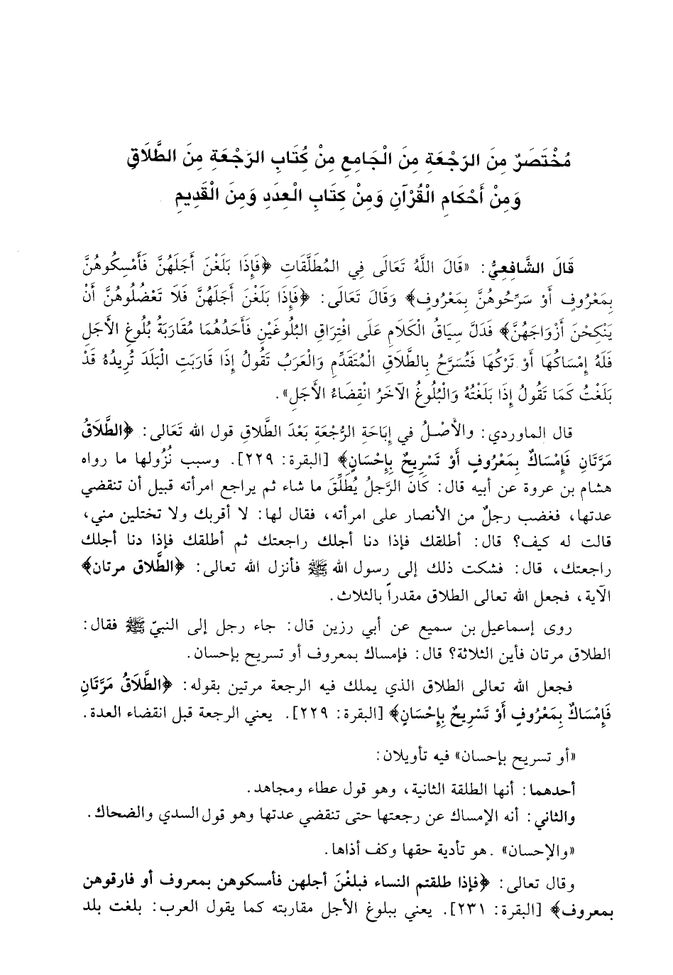 (مختصر من الرجعة من الجامع من كتاب الرجعة من الطلاق ومن أحكام القرآن ومن كتاب العدد ومن القديم)