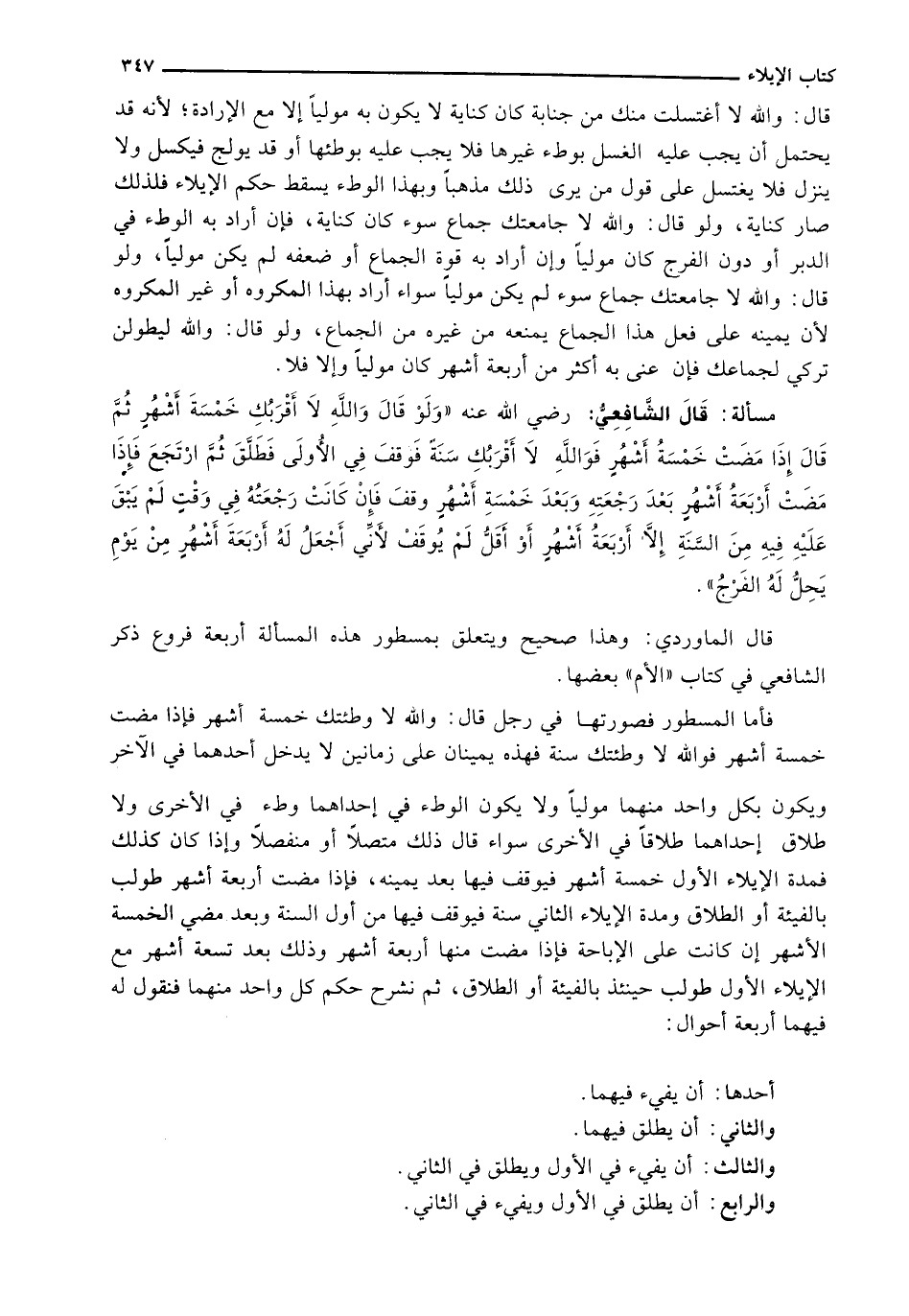 قَالَ الْمَاوَرْدِيُّ: وَهَذَا صَحِيحٌ وَيَتَعَلَّقُ بِمَسْطُورِ هَذِهِ الْمَسْأَلَةِ أَرْبَعَةُ فُرُوعٍ ذَكَرَ الشَّافِعِيُّ فِي كِتَابِ (الْأُمِّ) بَعْضَهَا.