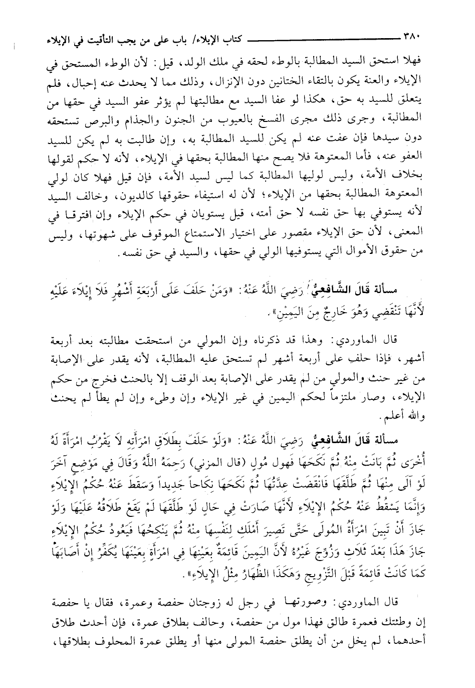 قَالَ الْمَاوَرْدِيُّ: وَهَذَا قَدْ ذَكَرْنَاهُ وَإِنَّ الْمُولِيَ مَنِ اسْتُحِقَّتْ مُطَالَبَتُهُ بَعْدَ أَرْبَعَةِ أَشْهُرٍ، فَإِذَا حَلَفَ عَلَى أَرْبَعَةِ أَشْهُرٍ لَمْ تُسْتَحَقَّ عَلَيْهِ الْمُطَالَبَةُ، لِأَنَّهُ يَقْدِرُ عَلَى الْإِصَابَةِ مِنْ غَيْرِ حِنْثٍ وَالْمُولِي مَنْ لَمْ يَقْدِرْ عَلَى الْإِصَابَةِ بَعْدَ الْوَقْفِ إِلَّا بِالْحِنْثِ فَخَرَجَ مَنْ حُكْمِ الْإِيلَاءِ، وَصَارَ مُلْتَزِمًا لِحُكْمِ الْيَمِينِ فِي غَيْرِ الْإِيلَاءِ وَإِنْ وَطِئَ وَإِنْ لَمْ يَطَأْ لَمْ يحنث والله أعلم.