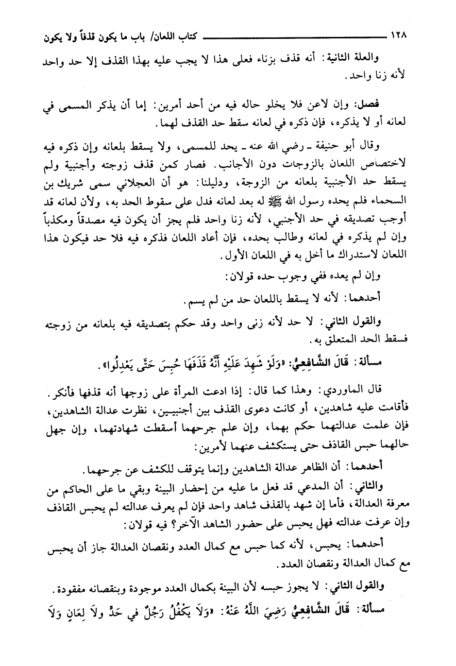 قَالَ الشافعي: " وَلَوْ شَهِدَ عَلَيْهِ أَنَّهُ قَذَفَهَا حُبِسَ حَتَّى يَعْدِلُوا ".