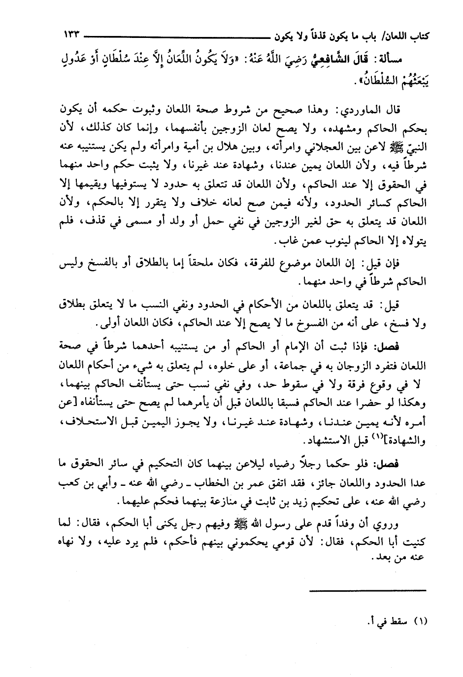 قال الشافعي رضي الله عنه: " وَلَا يَكُونُ اللِّعَانُ إِلَّا عِنْدَ سُلْطَانٍ أَوْ عُدُولٍ يَبْعَثُهُمُ السُّلْطَانُ ".