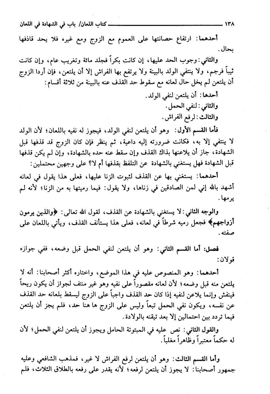 وَالْوَجْهُ الثَّانِي: لَا يَسْتَغْنِي بِالشَّهَادَةِ عَنِ الْقَذْفِ، لِقَوْلِ اللَّهِ تَعَالَى: {وَالَّذِينَ يرمون أزواجهم} فَجَعَلَ رَمْيَهُ شَرْطًا فِي لِعَانِهِ، فَعَلَى هَذَا يَسْتَأْنِفُ الْقَذْفَ، وَيَأْتِي بِاللِّعَانِ عَلَى صِفَتِهِ. فَصْلٌ: أما القسم الثاني: وهو أن تلتعن لنفي الحمل قبل وضعه، ففي قَوْلَانِ: