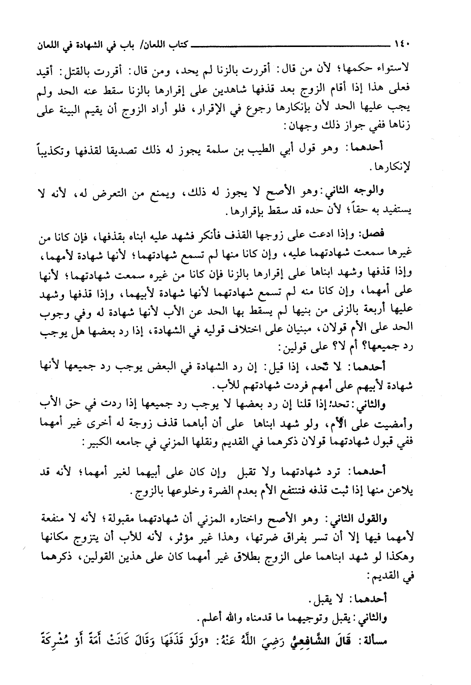 قال الشافعي رضي الله عنه: " وَلَوْ قَذَفَهَا وَقَالَ كَانَتْ أَمَةً أَوْ مُشْرِكَةً
