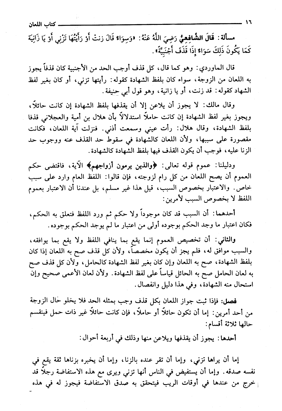 قَالَ الْمَاوَرْدِيُّ: وَهُوَ كَمَا قَالَ: كُلُّ قَذْفٍ أَوْجَبَ الْحَدَّ مِنَ الْأَجْنَبِيَّةِ كَانَ قَذْفًا يَجُوزُ بِهِ اللِّعَانُ مِنَ الزَّوْجَةِ، سَوَاءٌ كَانَ بِلَفْظِ الشَّهَادَةِ كَقَوْلِهِ: رَأَيْتُهَا تَزْنِي، أو كان بغير لفظ الشهاد كَقَوْلِهِ: قَدْ زَنَتْ، أَوْ يَا زَانِيَةُ، وَهُوَ قَوْلُ أَبِي حَنِيفَةَ.