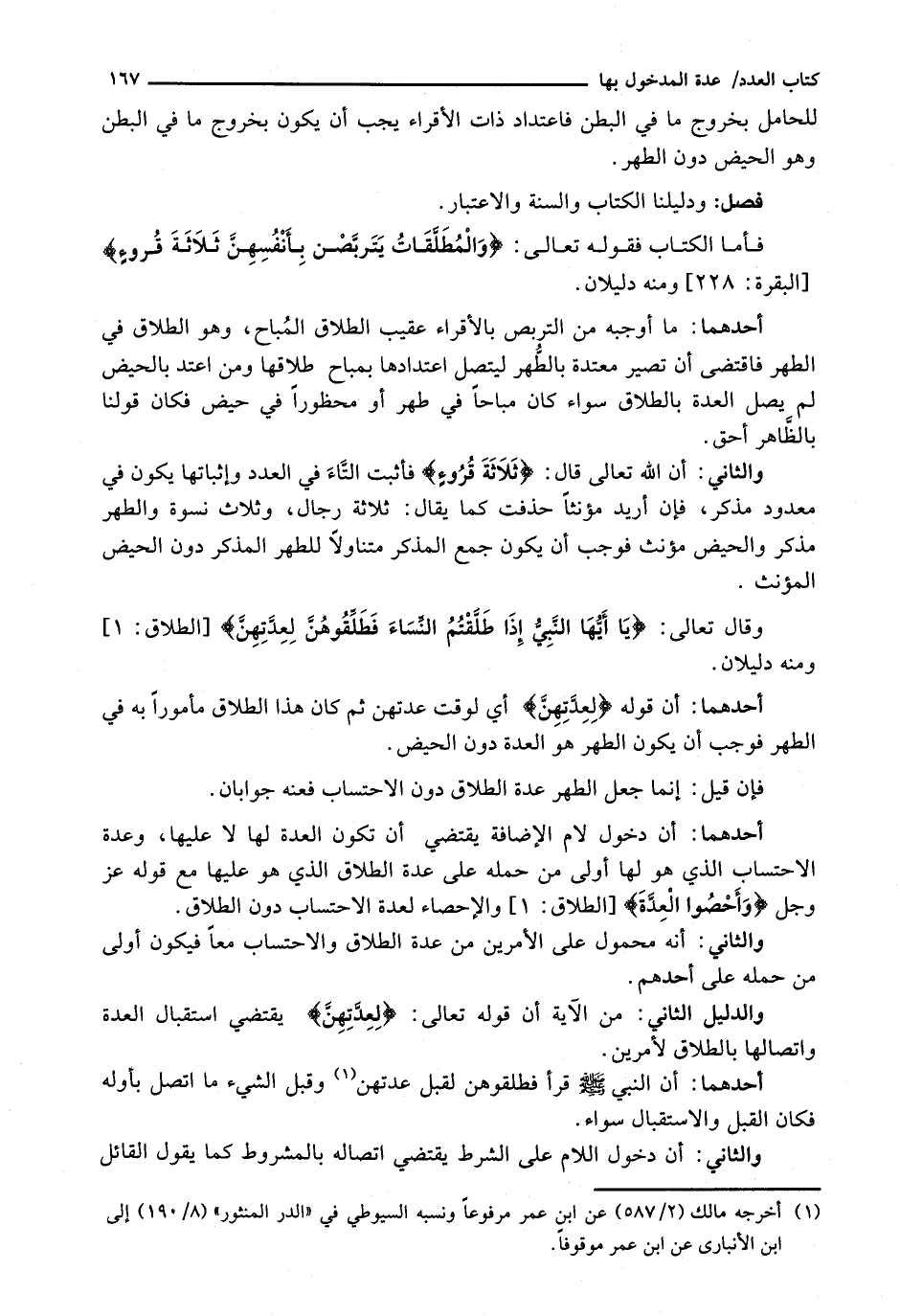 فَأَمَّا الْكِتَابُ فَقَوْلُهُ تَعَالَى: {وَالْمُطَلَّقَاتُ يَتَرَبَّصْنَ بِأَنْفُسِهِنَّ ثَلاثَةَ قُرُوءٍ} [البقرة: 228] وَمِنْهُ دَلِيلَانِ.