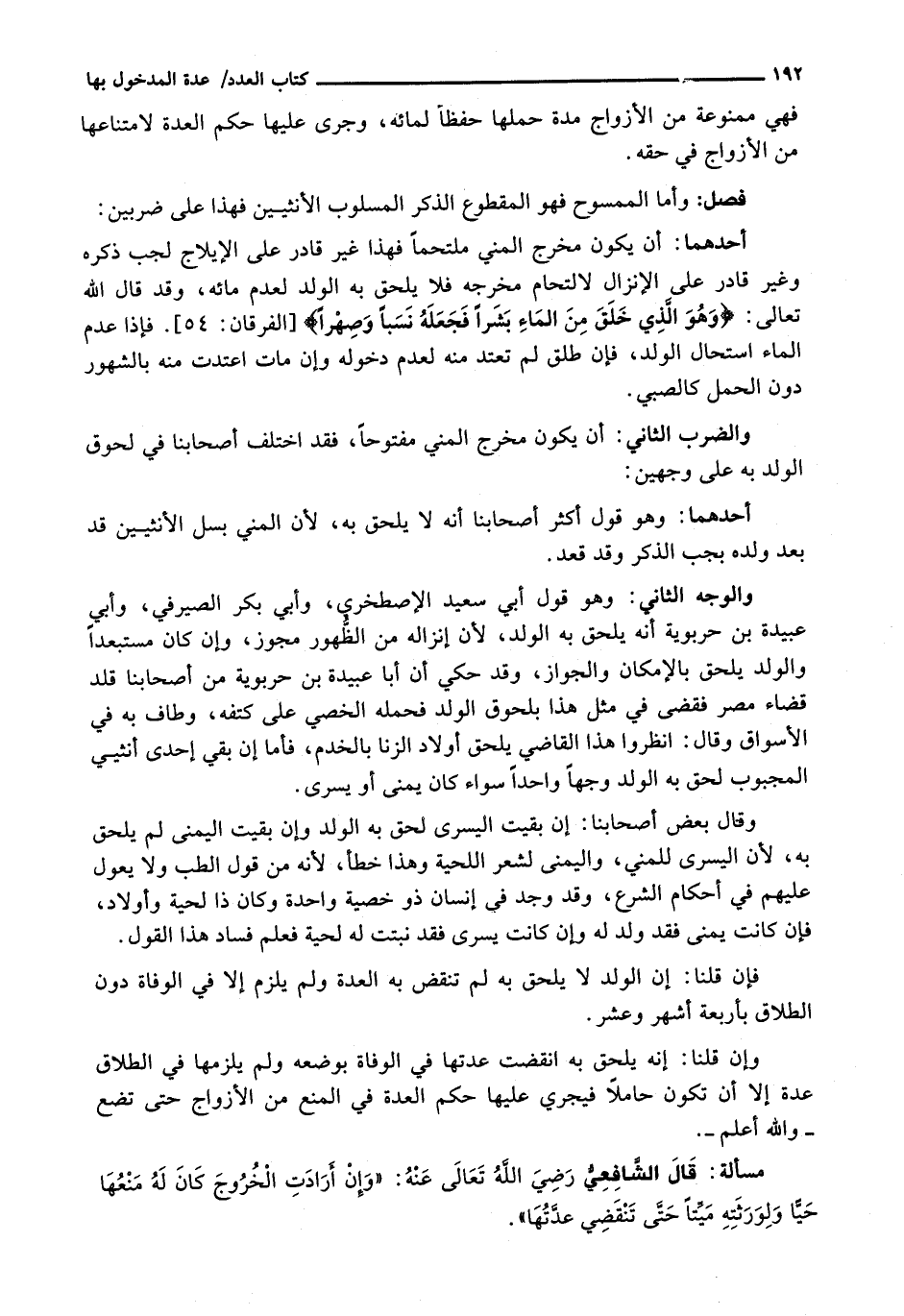 أَحَدُهُمَا: أَنْ يَكُونَ مَخْرَجُ الْمَنِيِّ مُلْتَحِمًا فَهَذَا غَيْرُ قَادِرٍ عَلَى الْإِيلَاجِ لِجَبِّ ذَكَرِهِ وَغَيْرُ قَادِرٍ عَلَى الْإِنْزَالِ لِالْتِحَامِ مَخْرَجِهِ فَلَا يَلْحَقُ بِهِ الْوَلَدُ لِعَدَمِ مَائِهِ، وَقَدْ قَالَ اللَّهُ تَعَالَى: {وَهُوَ الَّذِي خَلَقَ مِنَ الْمَاءِ بَشَرًا فَجَعَلَهُ نَسَبًا وَصِهْرًا} [الفرقان: 54] . فَإِذَا عُدِمَ الْمَاءُ اسْتَحَالَ الْوَلَدُ، فَإِنْ طَلَّقَ لَمْ تَعْتَدَّ مِنْهُ لِعَدَمِ دُخُولِهِ وَإِنْ مَاتَ اعْتَدَّتْ مِنْهُ بِالشُّهُورِ دُونَ الْحَمْلِ كَالصَّبِيِّ.