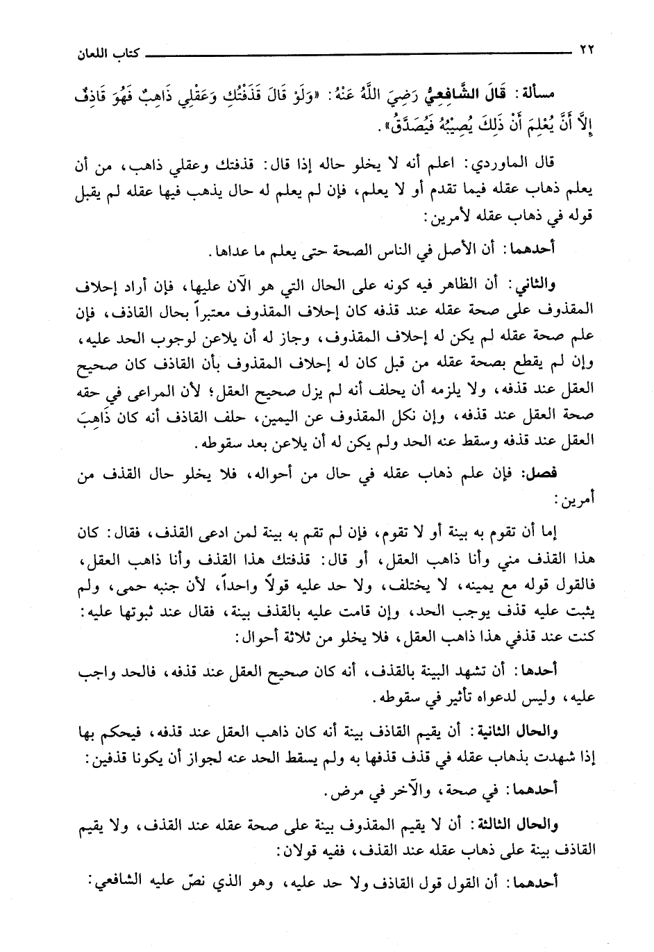 قال الشافعي رضي الله عنه: " وَلَوْ قَالَ قَذَفْتُكِ وَعَقْلِي ذَاهِبٌ فَهُوَ قَاذِفٌ إِلَّا أَنْ يُعْلَمَ أَنَّ ذَلِكَ يُصِيبُهُ فَيُصَدَّقُ ".