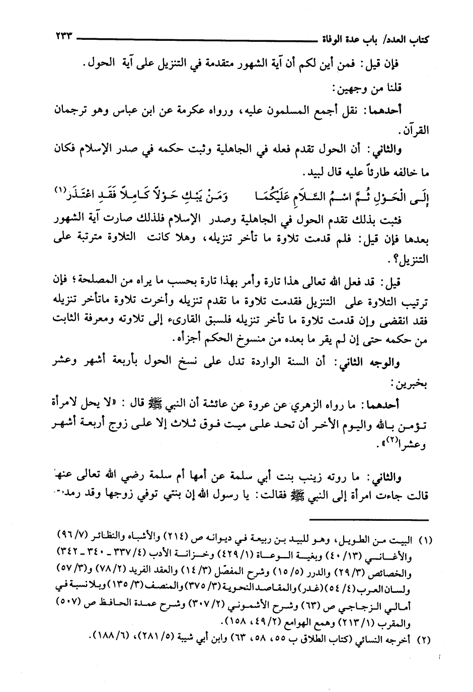 وَالْوَجْهُ الثَّانِي: أَنَّ السُّنَّةَ الْوَارِدَةَ تَدُلُّ عَلَى نَسْخِ الْحَوْلِ بِأَرْبَعَةِ أشهر وعشر بخبرين: