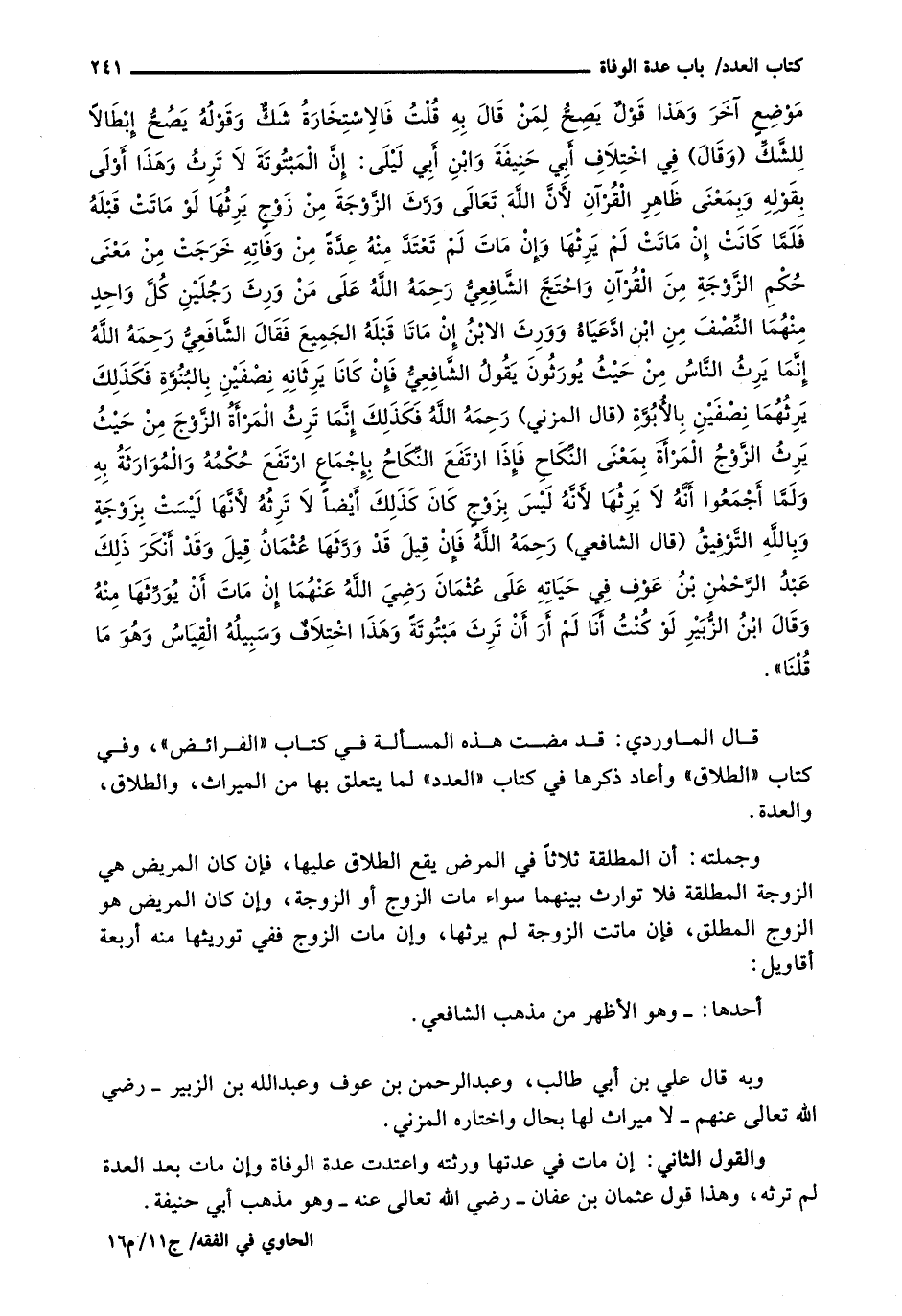قَالَ الْمَاوَرْدِيُّ: قَدْ مَضَتْ هَذِهِ الْمَسْأَلَةُ فِي كِتَابِ " الْفَرَائِضِ "، وَفِي كِتَابِ " الطَّلَاقِ " وَأَعَادَ ذِكْرَهَا فِي كِتَابِ " الْعِدَدِ " لِمَا يَتَعَلَّقُ بِهَا مِنَ الْمِيرَاثِ، وَالطَّلَاقِ، وَالْعِدَّةِ.