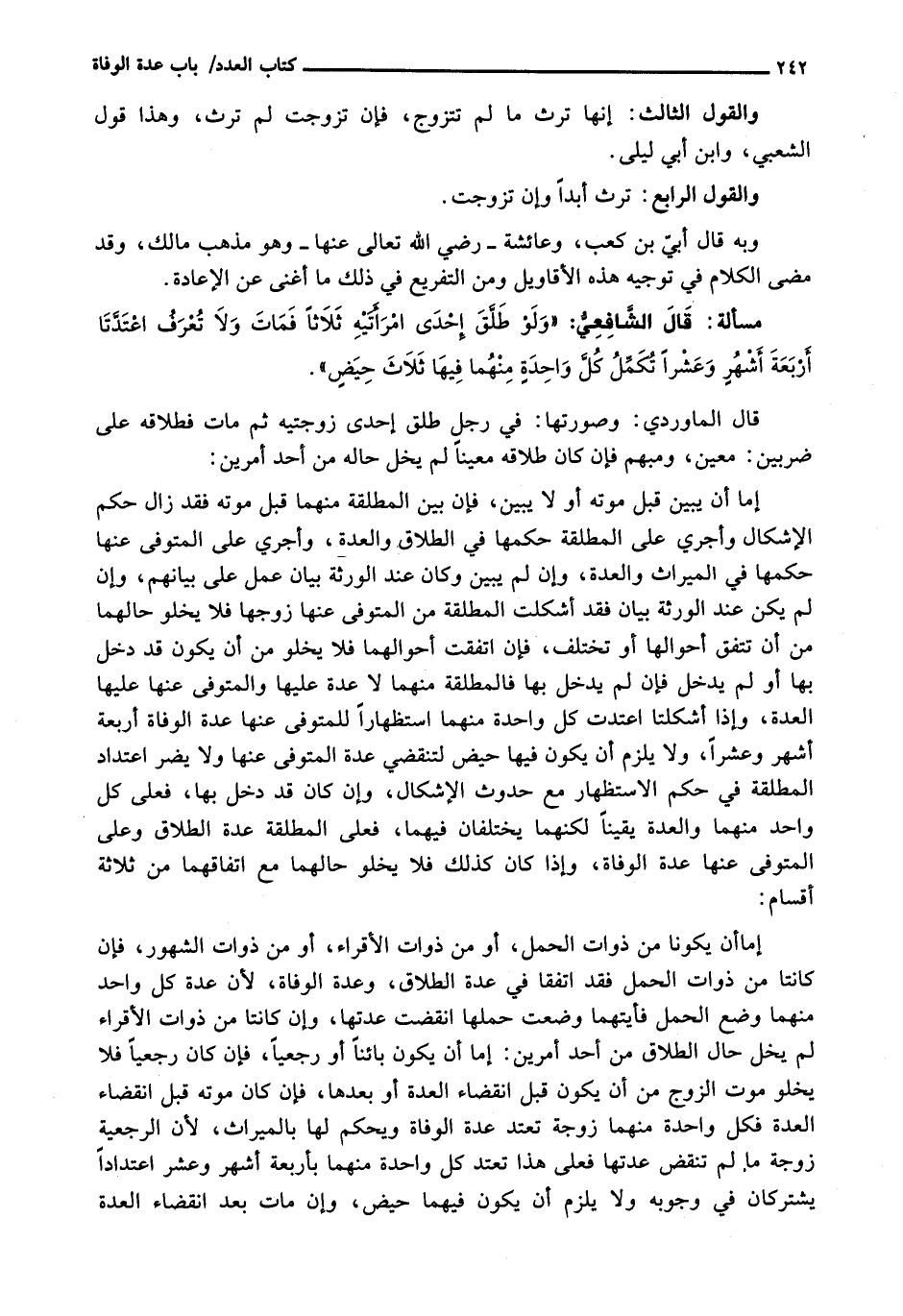 إِمَّا أَنْ يَكُونَا مِنْ ذَوَاتِ الْحَمْلِ، أَوْ مِنْ ذَوَاتِ الْأَقْرَاءِ، أَوْ مِنْ ذَوَاتِ الشُّهُورِ، فَإِنْ كَانَتَا مِنْ ذَوَاتِ الْحَمْلِ فَقَدِ اتَّفَقَا فِي عِدَّةِ الطَّلَاقِ، وَعِدَّةِ الْوَفَاةِ، لِأَنَّ عِدَّةَ كُلِّ وَاحِدٍ مِنْهُمَا وَضْعُ الْحَمْلِ فَأَيَّتُهُمَا وَضَعَتْ حَمْلَهَا انْقَضَتْ عِدَّتُهَا، وَإِنْ كَانَتَا مِنْ ذَوَاتِ الْأَقْرَاءِ لَمْ يَخْلُ حَالُ الطلاق في أَحَدِ أَمْرَيْنِ: إِمَّا أَنْ يَكُونَ بَائِنًا أَوْ رَجْعِيًّا، فَإِنْ كَانَ رَجْعِيًّا فَلَا يَخْلُو مَوْتِ الزَّوْجِ مِنْ أَنْ يَكُونَ قَبْلَ انْقِضَاءِ الْعِدَّةِ أَوْ بَعْدَهَا، فَإِنْ كَانَ مَوْتُهُ قَبْلَ انْقِضَاءِ العدة فكل واحد مِنْهُمَا زَوْجَةٌ تَعْتَدُّ عِدَّةَ الْوَفَاةِ وَيُحْكَمُ لَهَا بِالْمِيرَاثِ، لِأَنَّ الرَّجْعِيَّةَ زَوْجَةٌ مَا لَمْ تَنْقَضِ عِدَّتُهَا فَعَلَى هَذَا تَعْتَدُّ كُلُّ وَاحِدَةٍ مِنْهُمَا بِأَرْبَعَةِ أَشْهُرٍ وَعَشْرٍ اعْتِدَادًا يَشْتَرِكَانِ فِي وُجُوبِهِ وَلَا يَلْزَمُ أَنْ يَكُونَ فِيهِمَا حَيْضٌ، وَإِنْ مَاتَ بَعْدَ انْقِضَاءِ الْعِدَّةِ