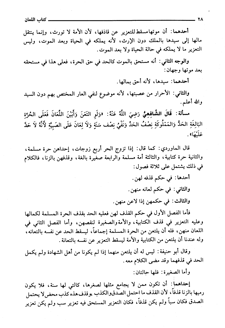فَأَمَّا الْفَصْلُ الْأَوَّلُ فِي حِكَمِ القذف لهن فعليه الحد بقذف الحرة المسلمة لِكَمَالِهَا وَعَلَيْهِ التَّعْزِيرُ فِي قَذْفِ الْكِتَابِيَّةِ، وَالْأَمَةِ وَالصَّغِيرَةِ لِنَقْصِهِنَّ، وَأَمَّا الْفَصْلُ الثَّانِي فِي اللِّعَانِ مِنْهُنَّ، فَلَهُ أَنْ يَلْتَعِنَ مِنَ الْحُرَّةِ الْمُسْلِمَةِ إِجْمَاعًا، لِيُسْقِطَ الْحَدَّ عَنْ نَفْسِهِ بِالْتِعَانِهِ، وَلَهُ عِنْدَنَا أَنْ يَلْتَعِنَ مِنَ الْكِتَابِيَّةِ وَالْأَمَةِ لِيُسْقِطَ التَّعْزِيرَ عَنْ نَفْسِهِ بِالْتِعَانِهِ.