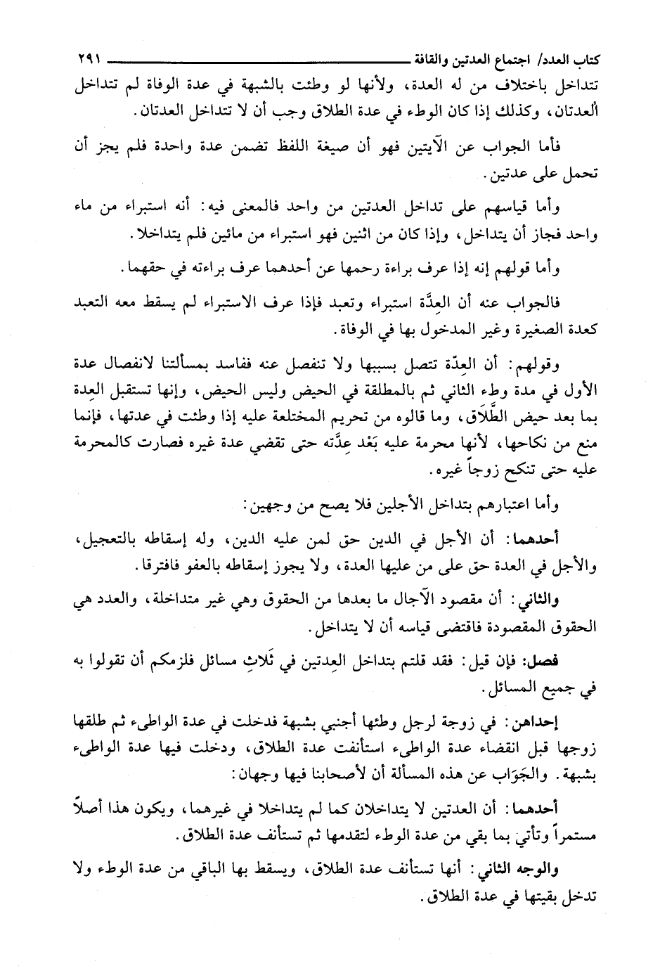 وَأَمَّا قِيَاسُهُمْ عَلَى تَدَاخُلِ الْعِدَّتَيْنِ مِنْ وَاحِدٍ فَالْمَعْنَى فِيهِ: أَنَّهُ اسْتِبْرَاءٌ مِنْ مَاءٍ وَاحِدٍ فَجَازَ أَنْ يَتَدَاخَلَ، وَإِذَا كَانَ مِنِ اثْنَيْنِ فَهُوَ اسْتِبْرَاءٌ مِنْ مَائَيْنِ فَلَمْ يَتَدَاخَلَا.