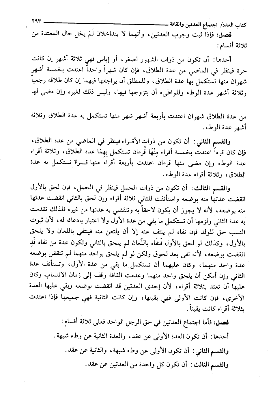 وَالْقِسْمُ الثَّانِي: أَنْ تَكُونَ الْأُولَى عَنْ وَطْءِ شُبْهَةٍ، وَالثَّانِيَةُ عَنْ عَقْدٍ. وَالْقِسْمُ الثَّالِثُ: أَنْ كون كُلُّ وَاحِدَةٍ مِنَ الْعِدَّتَيْنِ عَنْ عَقْدٍ.