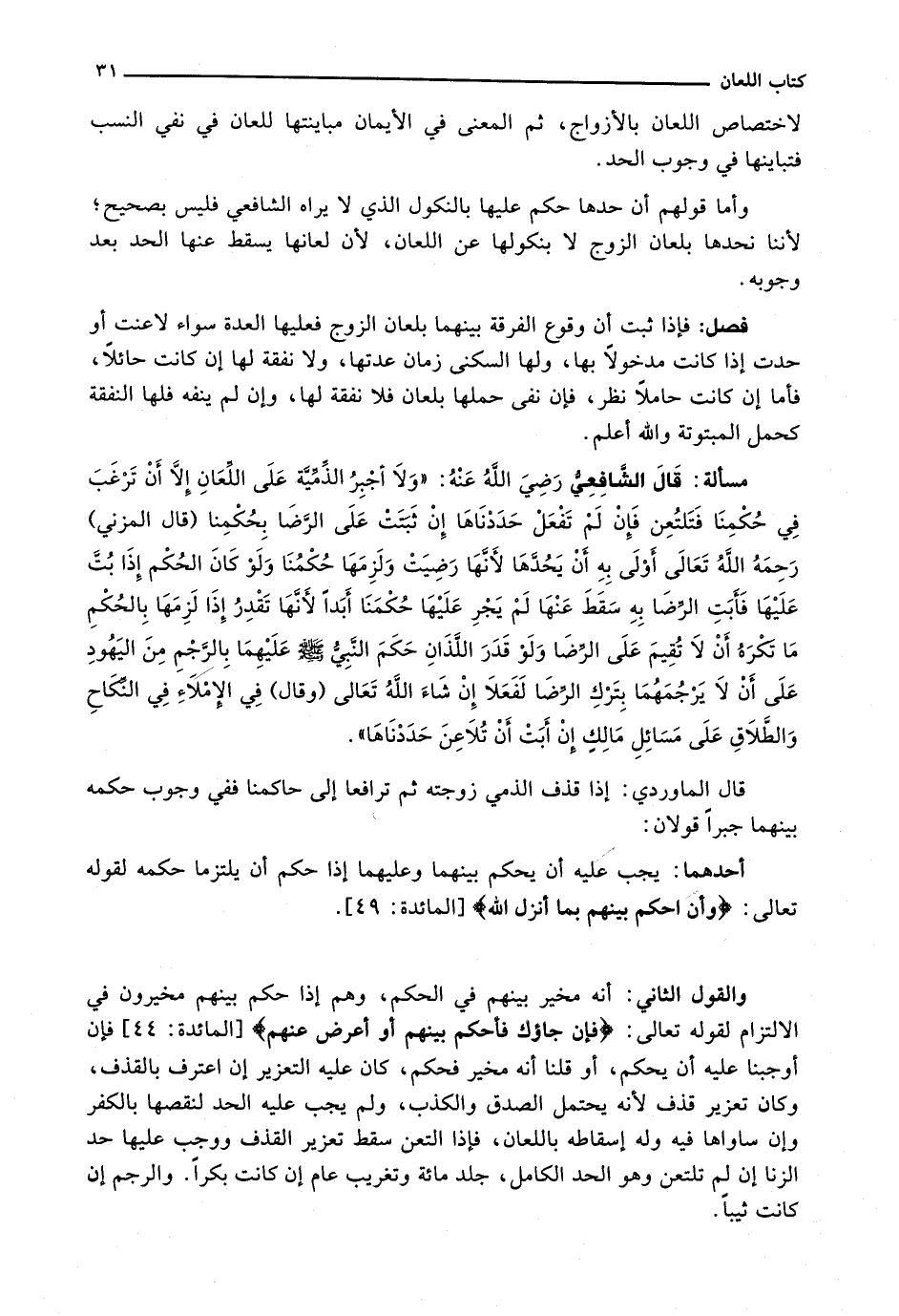 وَالْقَوْلُ الثَّانِي: أَنَّهُ مُخَيَّرٌ بَيْنَهُمْ فِي الْحُكْمِ، وَهُمْ إِذَا حَكَمَ بَيْنَهُمْ مُخَيَّرُونَ فِي الالتزام لقوله تعالى {فإن جاؤك فَاحْكُمْ بَيْنَهُمْ أَوْ أَعْرِضْ عَنْهُمْ} [المائدة: 44] فَإِنْ أَوْجَبْنَا عَلَيْهِ أَنْ يَحْكُمَ، أَوْ قُلْنَا إِنَّهُ مُخَيَّرٌ فَحَكَمَ، كَانَ عَلَيْهِ التَّعْزِيرُ إِنِ اعْتَرَفَ بِالْقَذْفِ، وَكَانَ تَعْزِيرَ قَذْفٍ لِأَنَّهُ يَحْتَمِلُ الصِّدْقَ وَالْكَذِبَ، وَلَمْ يَجِبْ عَلَيْهِ الْحَدُّ لِنَقْصِهَا بِالْكُفْرِ وَإِنْ سَاوَاهَا فِيهِ وَلَهُ إِسْقَاطُهُ بِاللِّعَانِ، فَإِذَا الْتَعَنَ سَقَطَ تَعْزِيرُ الْقَذْفِ وَوَجَبَ عَلَيْهَا حَدُّ الزِّنَا إِنْ لَمْ تَلْتَعن وَهُوَ الْحَدُّ الْكَامِلُ، جَلْدُ مِائَةٍ وَتَغْرِيبُ عَامٍ إِنْ كَانَتْ بِكْرًا. والرجم إن كانت ثيباً.