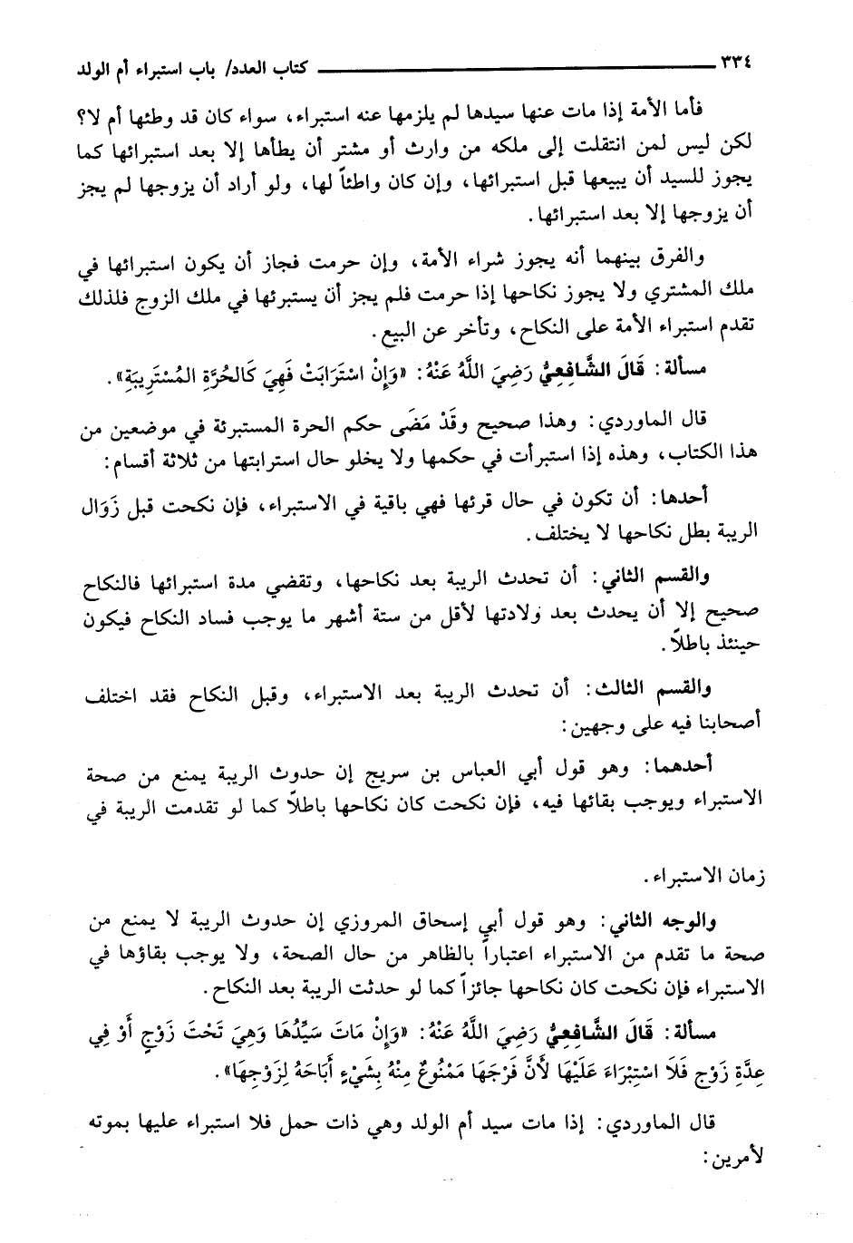 قَالَ الْمَاوَرْدِيُّ: وَهَذَا صَحِيحٌ وَقَدْ مَضَى حُكْمُ الْحُرَّةِ الْمُسْتَبْرِئَةِ فِي مَوْضِعَيْنِ مِنْ هَذَا الْكِتَابِ، وَهَذِهِ إِذَا اسْتَبْرَأَتْ فِي حُكْمِهَا وَلَا يَخْلُو حَالُ اسْتِرَابَتِهَا مِنْ ثَلَاثَةِ أَقْسَامٍ: