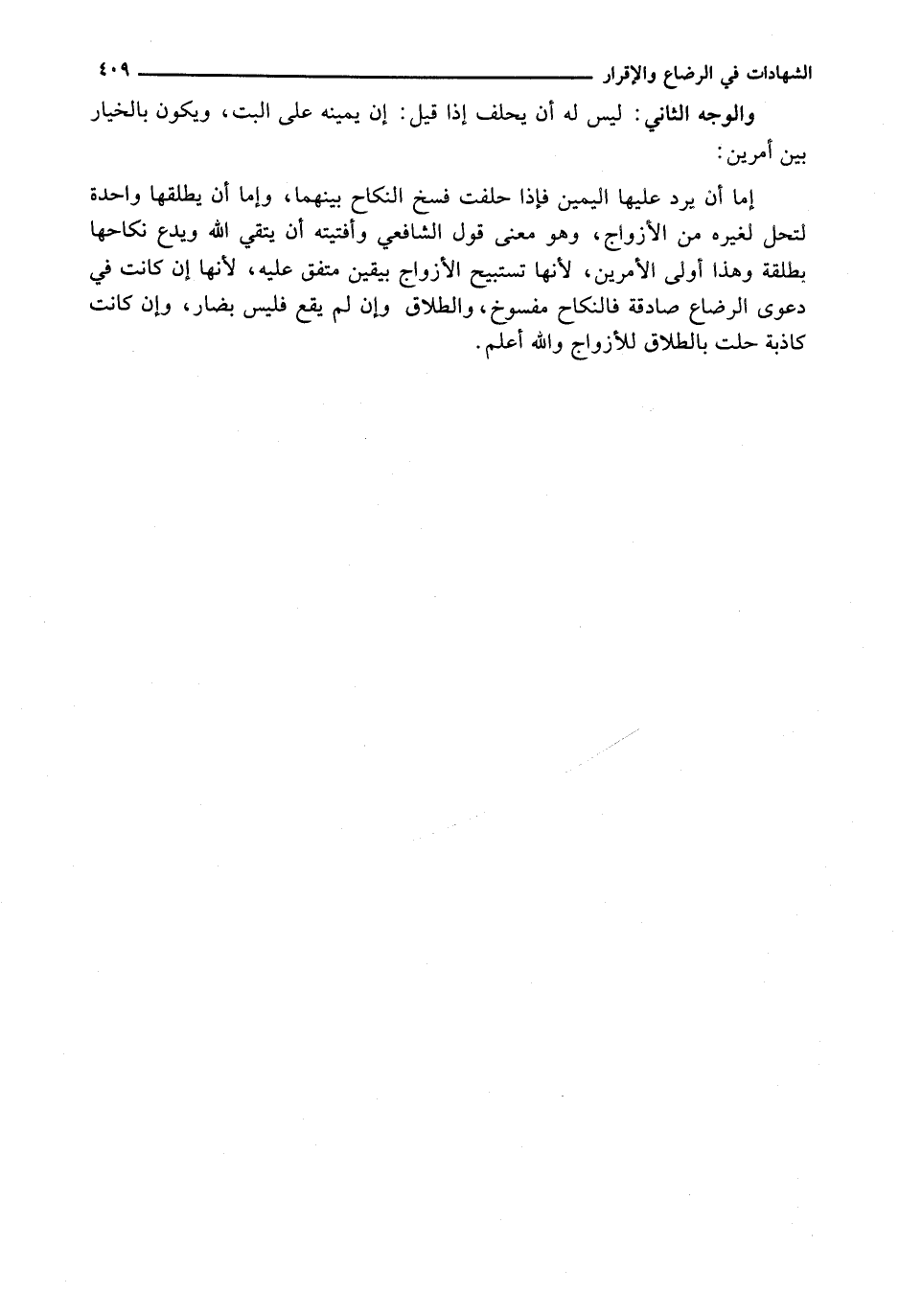 إِمَّا أَنْ يَرُدَّ عَلَيْهَا الْيَمِينَ فَإِذَا حَلَفَتْ فُسِخَ النِّكَاحُ بَيْنَهُمَا، وَإِمَّا أَنْ يُطَلِّقَهَا وَاحِدَةً لِتَحِلَّ لِغَيْرِهِ مِنَ الْأَزْوَاجِ، وَهُوَ مَعْنَى قَوْلِ الشَّافِعِيِّ وَأَفْتَيْتُهُ أَنْ يَتَّقِيَ اللَّهَ وَيَدَعَ نِكَاحَهَا بِطَلْقَةٍ وَهَذَا أَوْلَى الْأَمْرَيْنِ، لِأَنَّهَا تَسْتَبِيحُ الْأَزْوَاجَ بِيَقِينٍ مُتَّفَقٍ عَلَيْهِ، لِأَنَّهَا إِنْ كَانَتْ فِي دَعْوَى الرَّضَاعِ صَادِقَةً فَالنِّكَاحُ مَفْسُوخٌ، وَالطَّلَاقُ وَإِنْ لَمْ يَقَعْ فَلَيْسَ بِضَارٍّ، وَإِنْ كَانَتْ كَاذِبَةً حَلَّتْ بِالطَّلَاقِ لِلْأَزْوَاجِ وَاللَّهُ أَعْلَمُ.