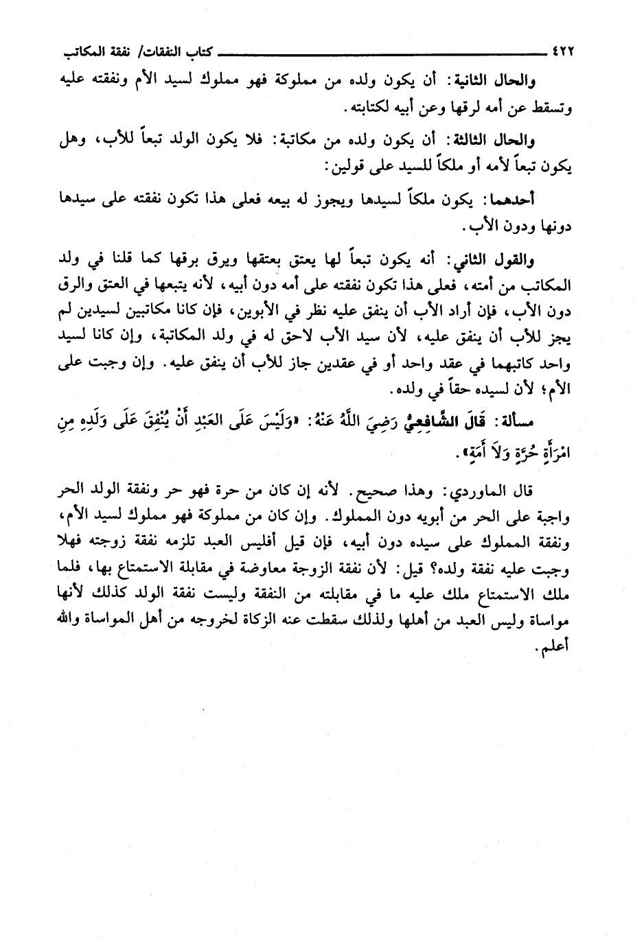 قال الشافعي رضي الله عنه: " وَلَيْسَ عَلَى الْعَبْدِ أَنْ يُنْفِقَ عَلَى وَلَدِهِ مِنَ امْرَأَةٍ حُرَّةٍ وَلَا أَمَةٍ ".