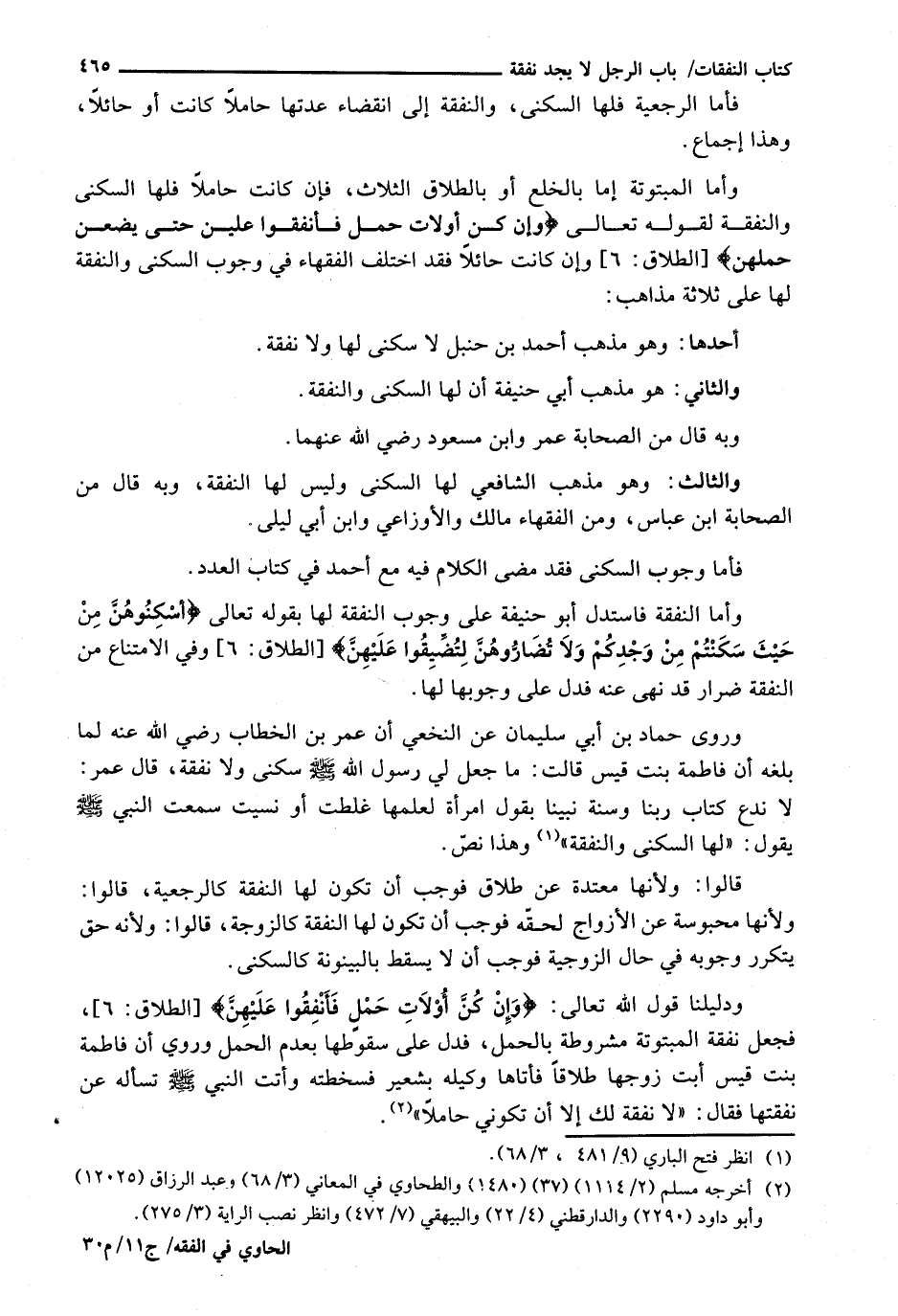 وَدَلِيلُنَا قَوْلُ اللَّهِ تَعَالَى {وَإِنْ كُنَّ أُولاتِ حَمْلٍ فَأَنْفِقُوا عَلَيْهِنَّ) [الطلاق: 6] ، فَجَعَلَ نَفَقَةَ الْمَبْتُوتَةَ مَشْرُوطَةً بِالْحَمْلِ، فَدَلَّ عَلَى سُقُوطِهَا بِعَدَمِ الْحَمْلِ وَرُوِيَ أَنَّ فَاطِمَةَ بِنْتَ قَيْسٍ أَبَتَّ زَوْجُهَا طَلَاقًا فَأَتَاهَا وَكِيلُهُ بِشَعِيرٍ فَسَخِطَتْهُ وَأَتَتِ النبي - صَلَّى اللَّهُ عَلَيْهِ وَسَلَّم َ - تَسْأَلُهُ عَنْ نَفَقَتِهَا فَقَالَ: " لَا نَفَقَةَ لَكِ إِلَّا أَنْ تَكُونِي حَامِلًا ".